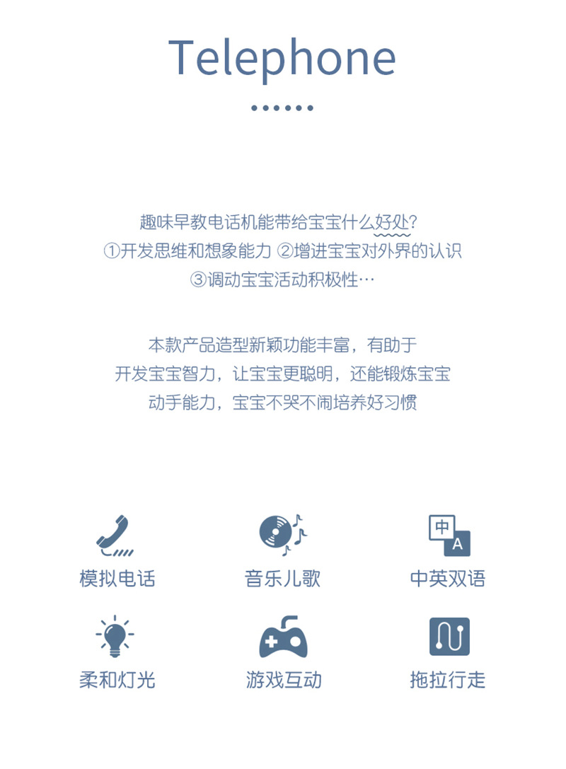 • 조기 교육 중간 파란색 전화 [배터리 포함]