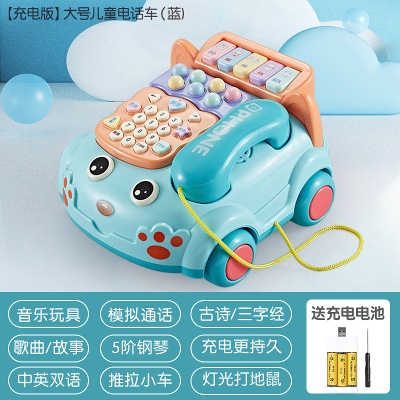 • 유아교육용 대형 파란색 전화기 [충전식 배터리 + 충전기]