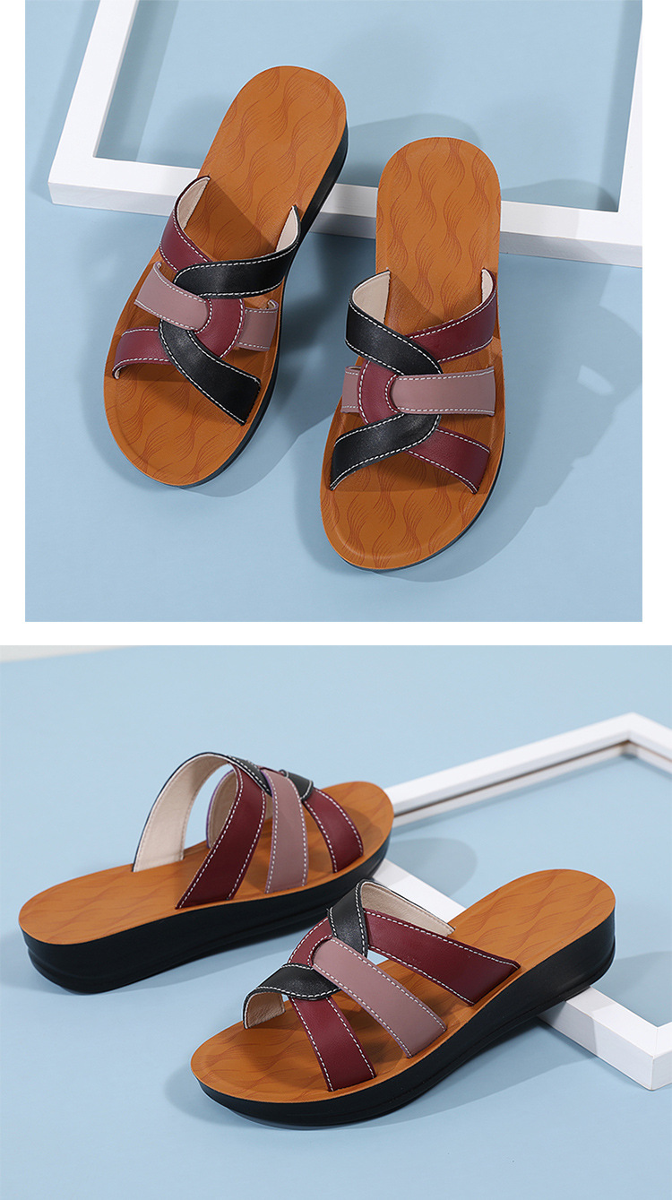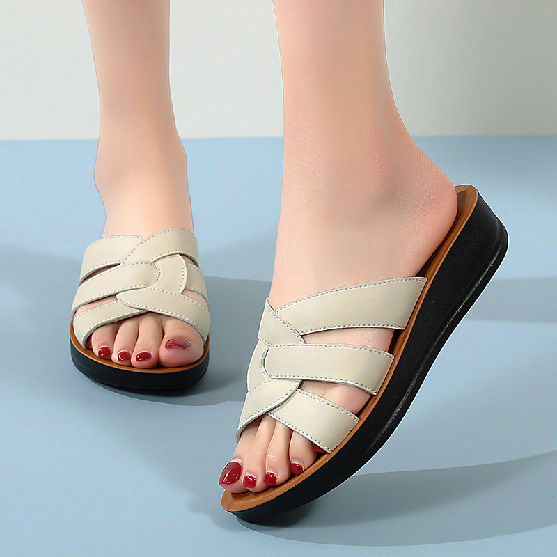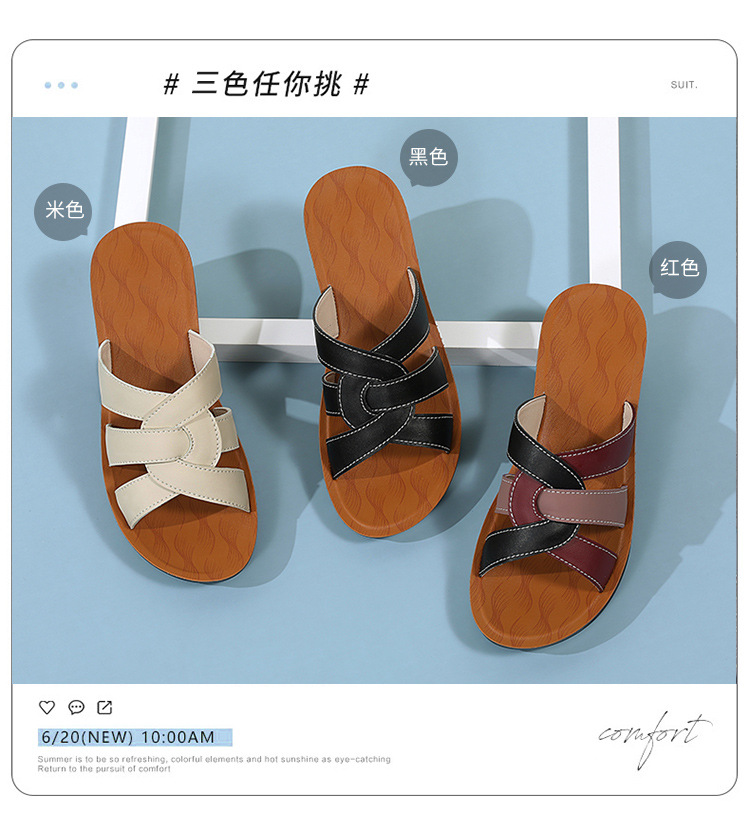 여름 새로운 플랫 샌들 여성용 미끄럼 방지 겉옷 플러스 사이즈 다재다능한 여성용 샌들 여성용 어머니 슬리퍼