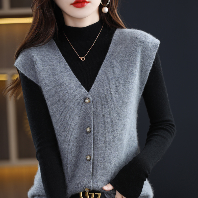 레트로 스타일 조끼 여성 봄과 가을 고급 단색 조끼 여성 니트 한국식 문학 스타일 조끼 도매