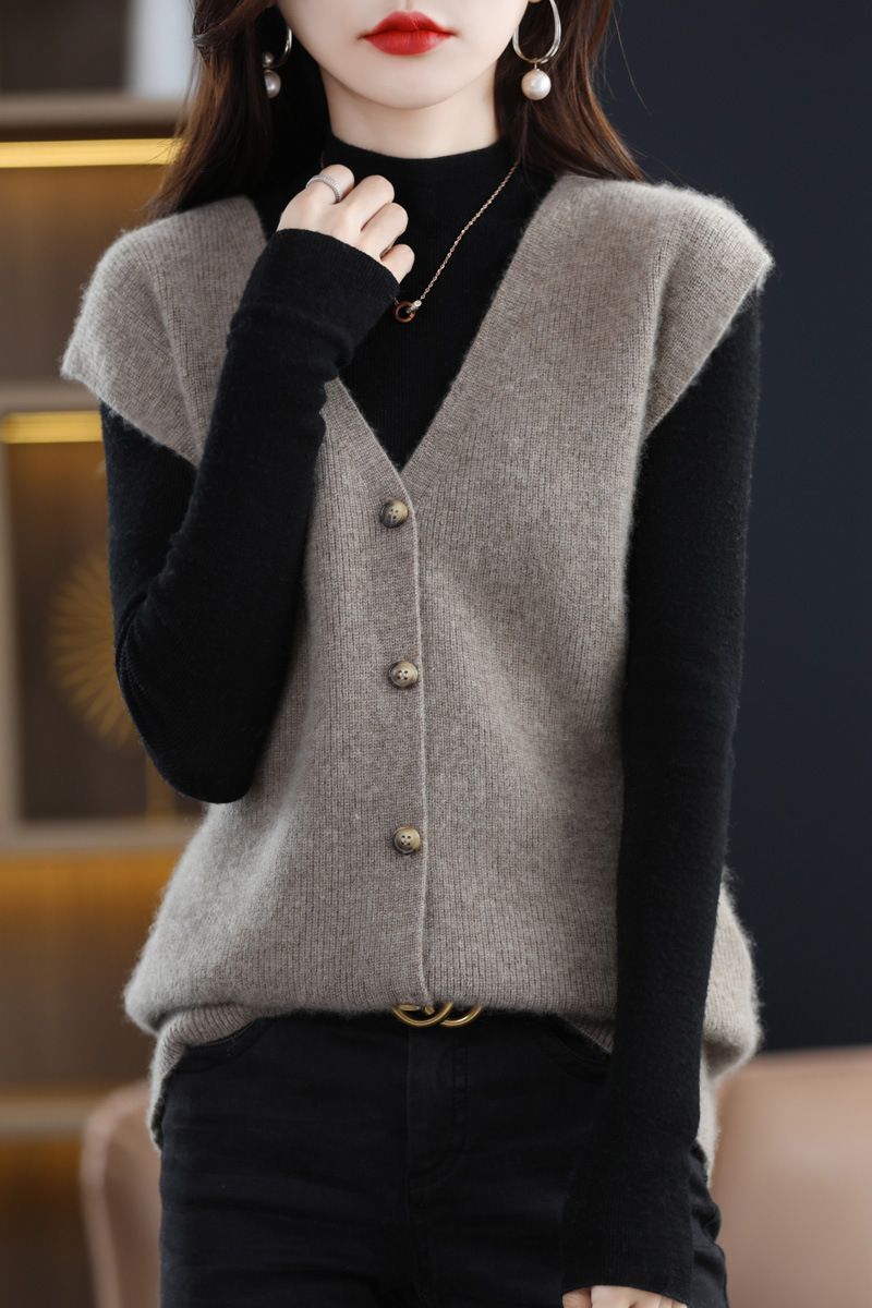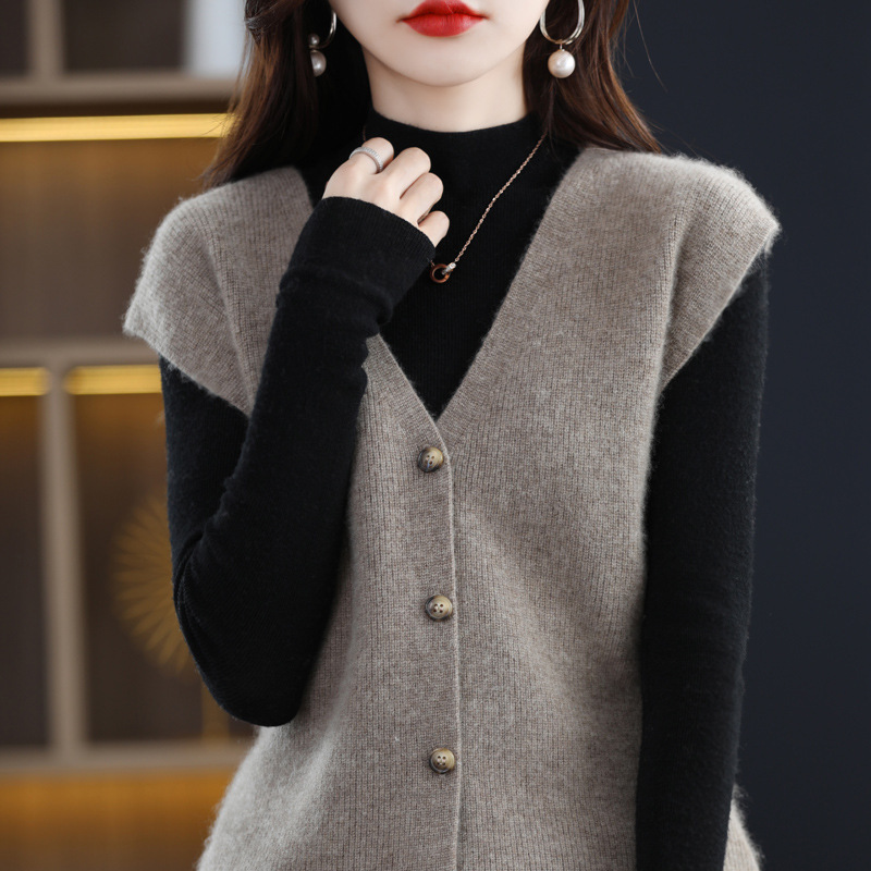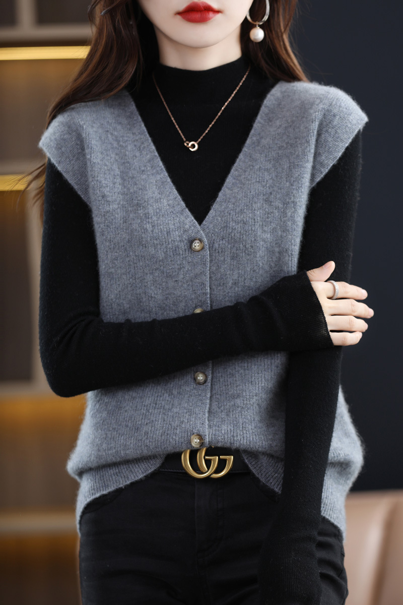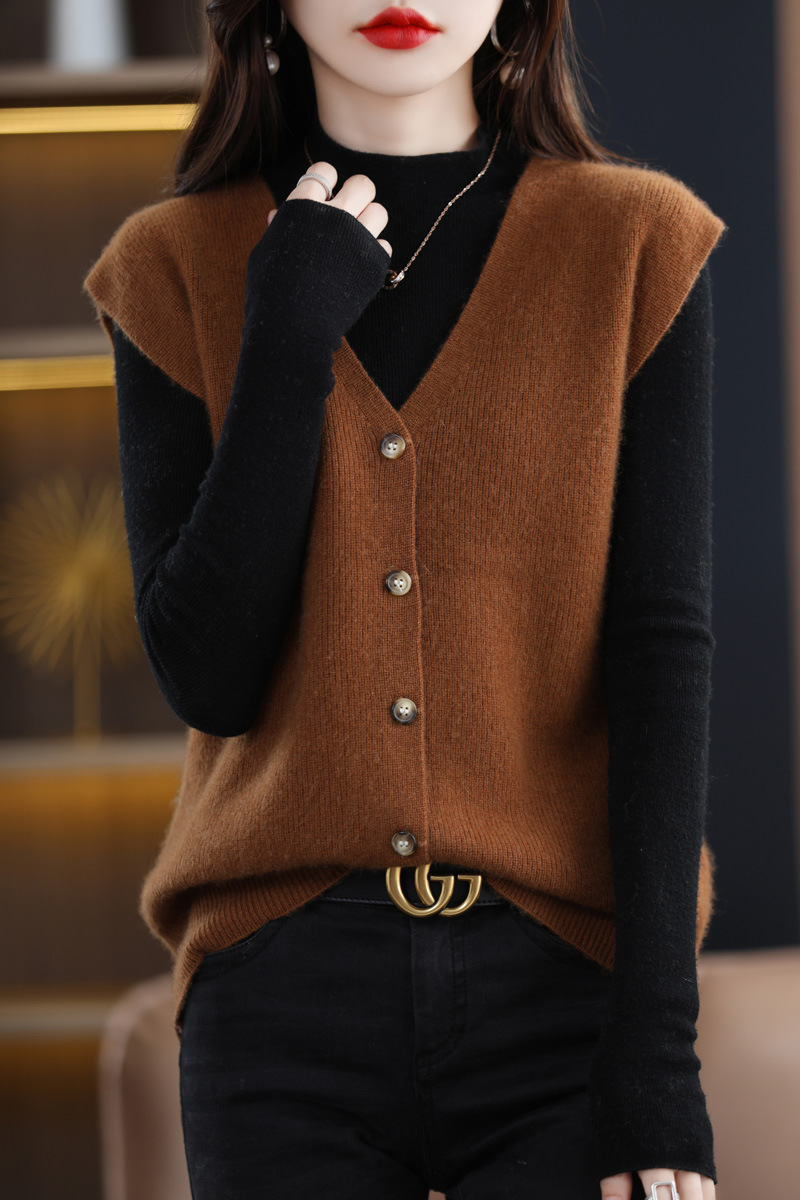 레트로 스타일 조끼 여성 봄과 가을 고급 단색 조끼 여성 니트 한국식 문학 스타일 조끼 도매스토어 가기