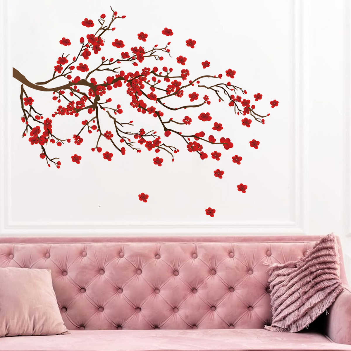 BR93838 중국 잉크 스타일 밝은 붉은 매화 자체 접착 벽 스티커 거실 침실 배경 벽 장식 스티커