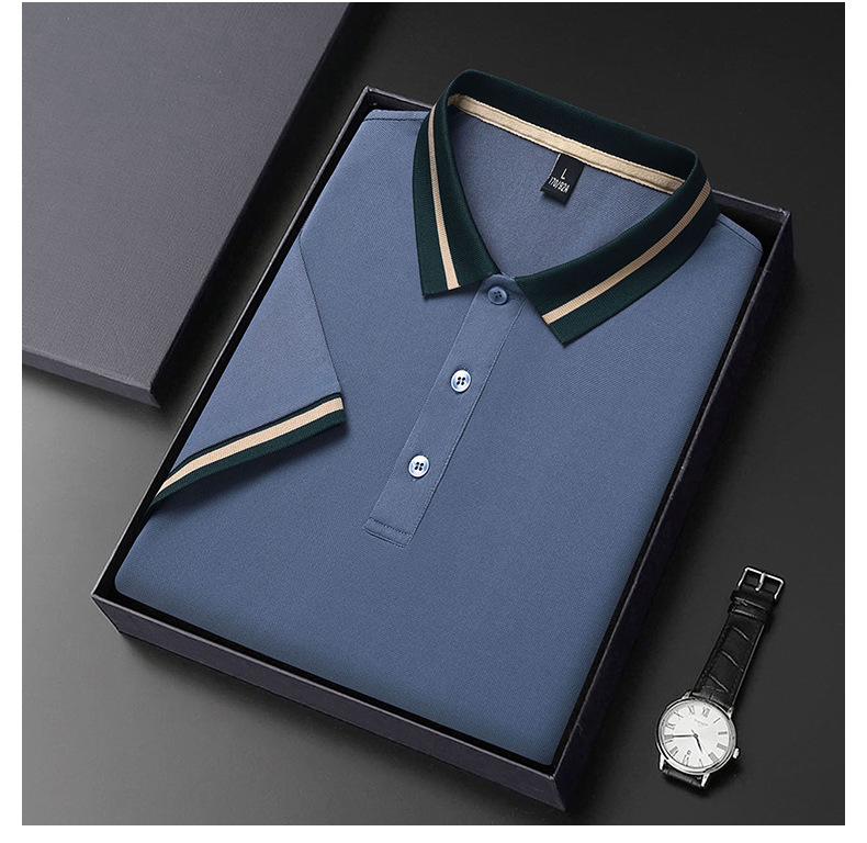 젊고 중년 반팔 티셔츠 남자 2024 여름 새 옷깃 티셔츠 최고 비즈니스 캐주얼 반소매 폴로 셔츠스토어 가기