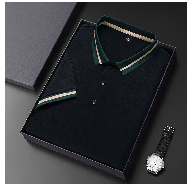 젊고 중년 반팔 티셔츠 남자 2024 여름 새 옷깃 티셔츠 최고 비즈니스 캐주얼 반소매 폴로 셔츠