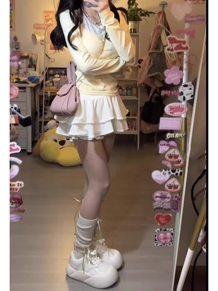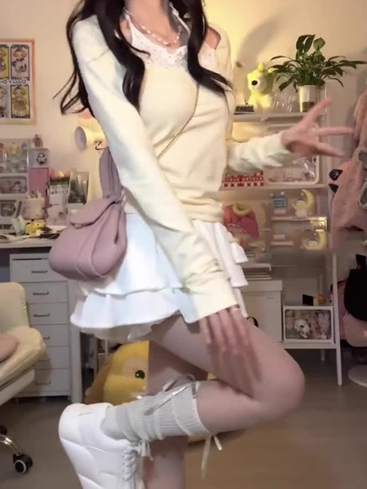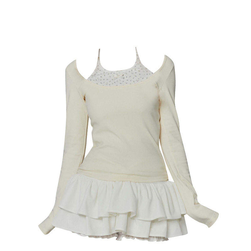 가짜 투피스 쇼트 스트랩 탑 여성용 슬림 핏 슬리밍 셔츠 타이트한 봄과 가을 겨울 뜨거운 소녀 긴팔 티셔츠 한국 스타일스토어 가기