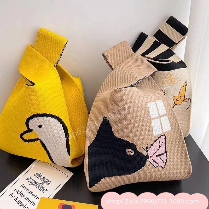 인터넷 연예인 핸드백 여성용 니트 버킷 백 일본식 조커 핸드 캐주얼 토트 백 런치 백 도매