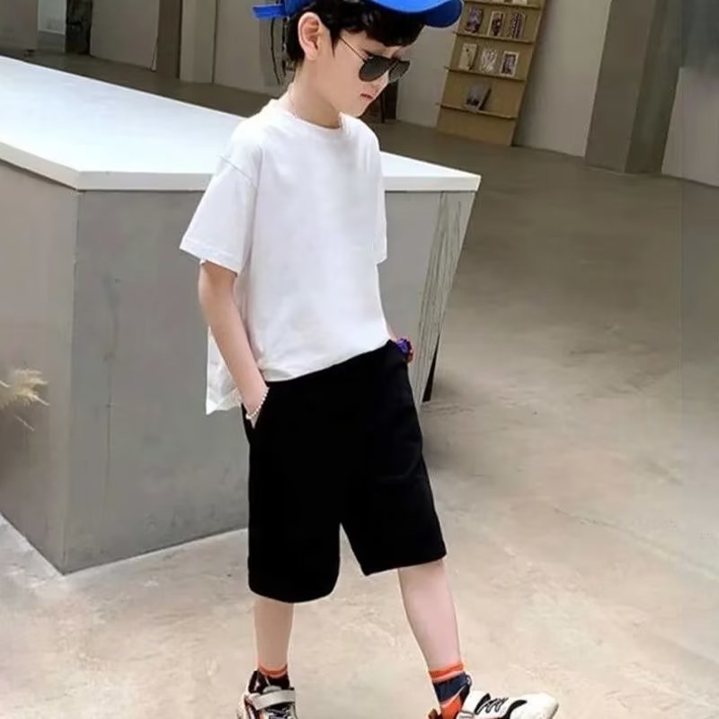 중대형 어린이 여름 반바지 남성 어린이 중간 바지 인공면 반바지 한국 스타일의 트렌디 한 단색 간단한 캐주얼 반바지