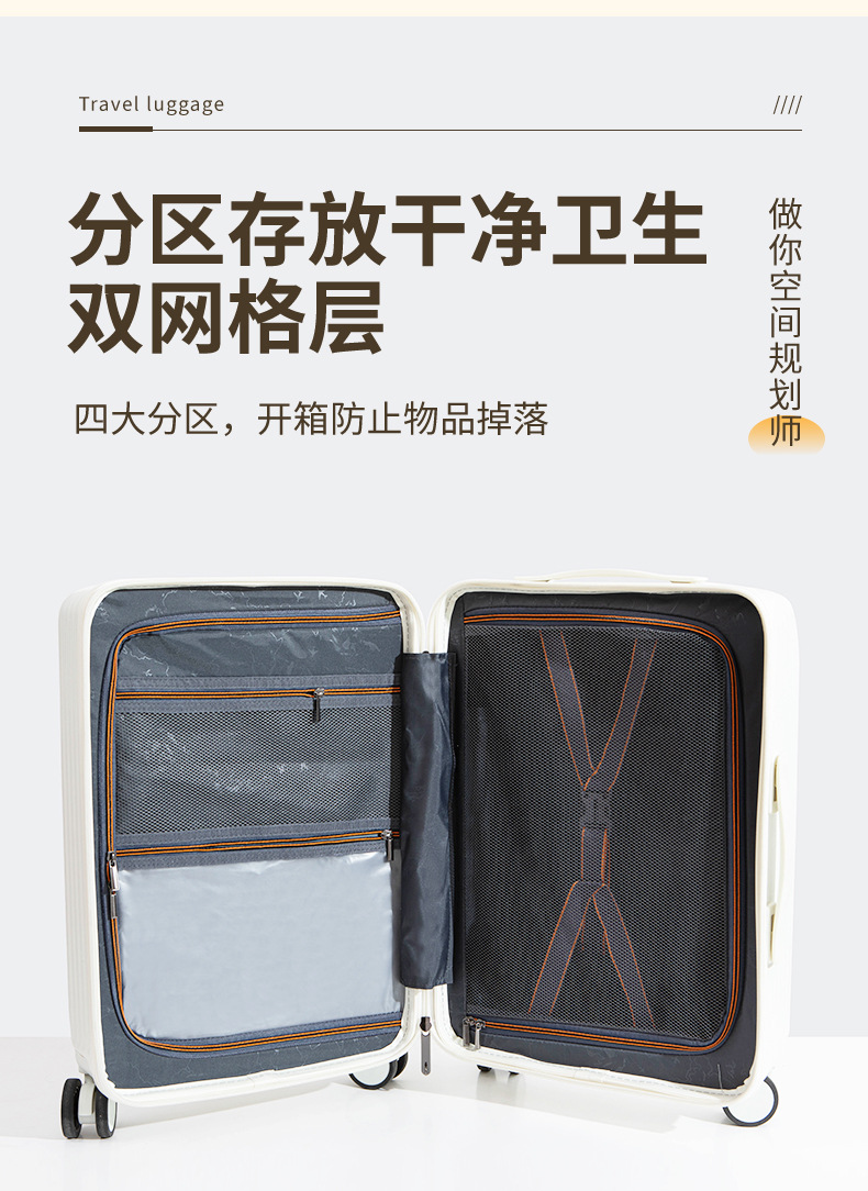 전면 개방 수하물 여성용 습식 및 건식 분리 가방 20 인치 대용량 탑승 케이스 남성 범용 휠 트롤리 케이스