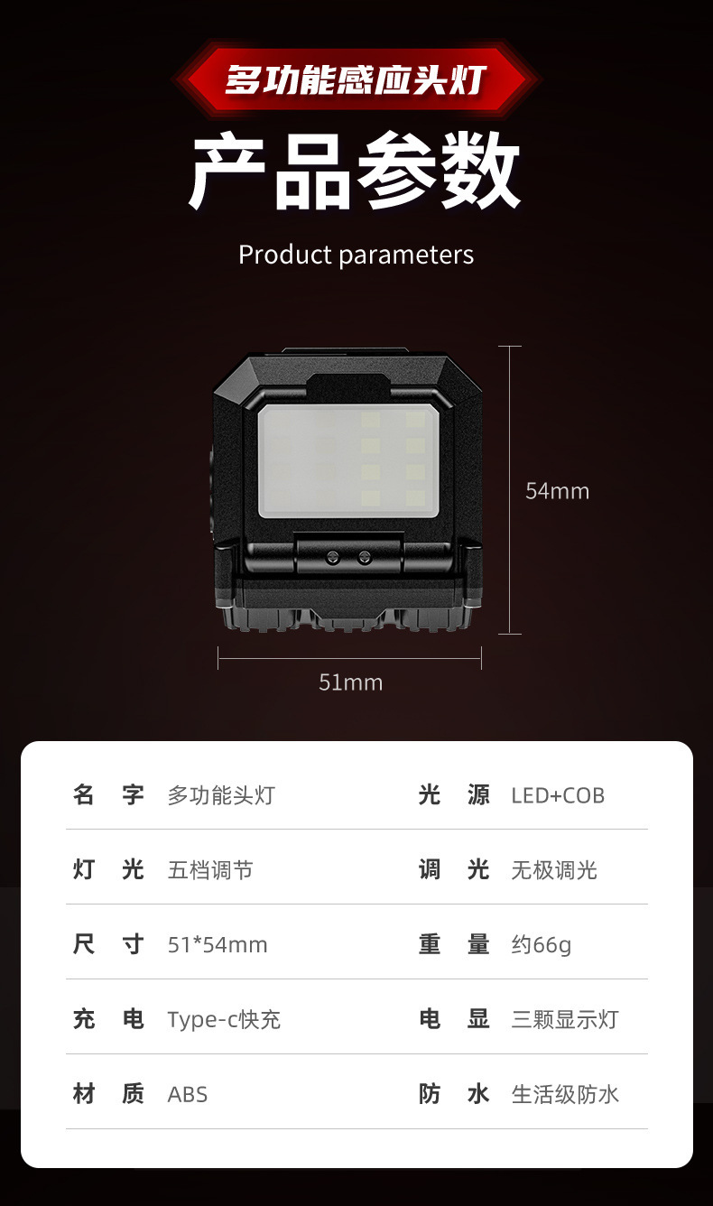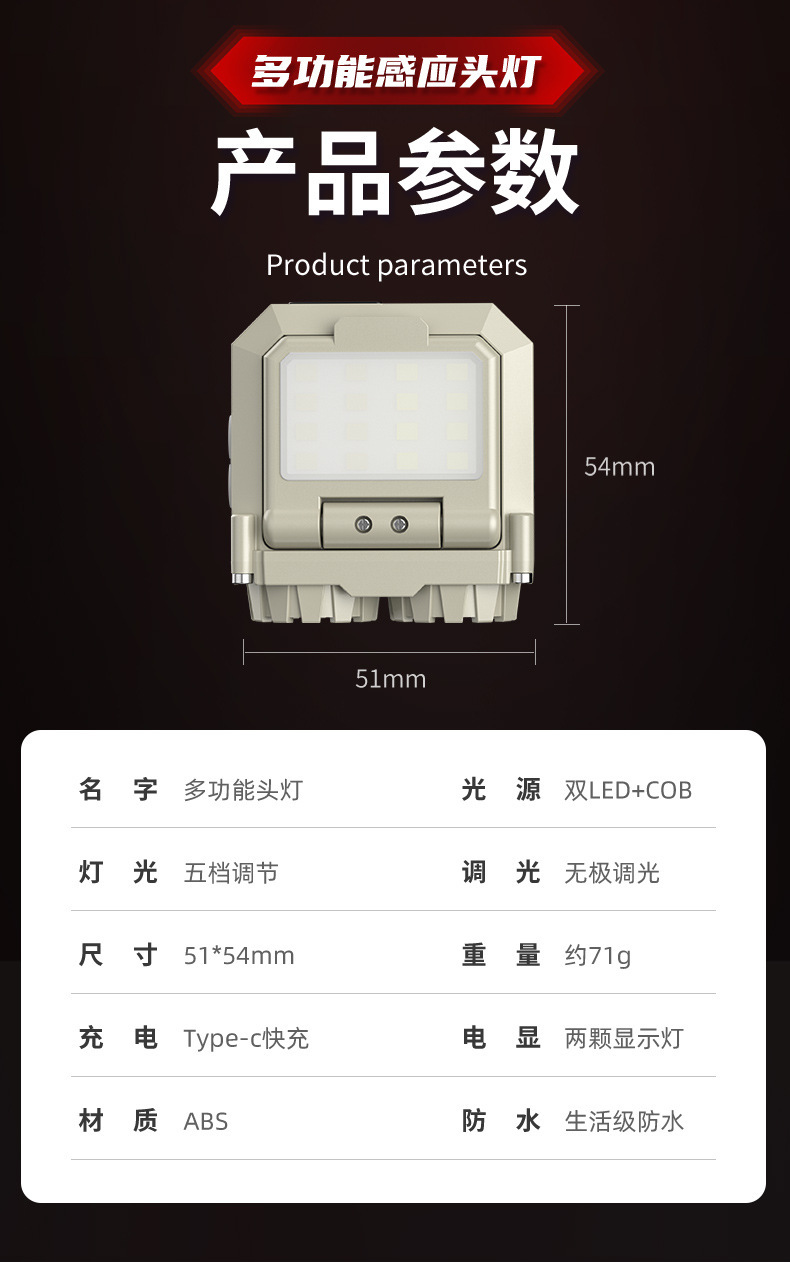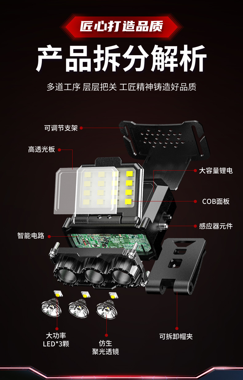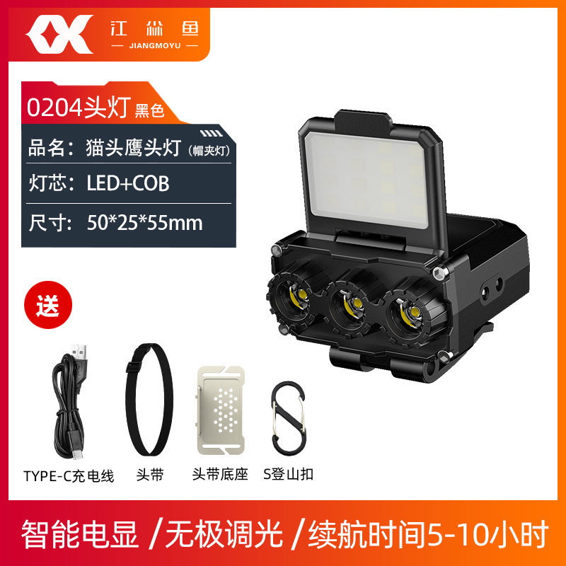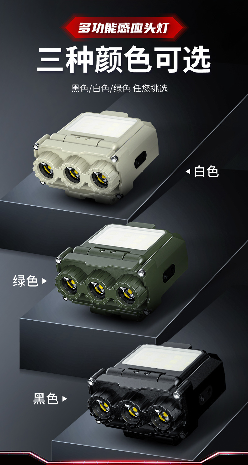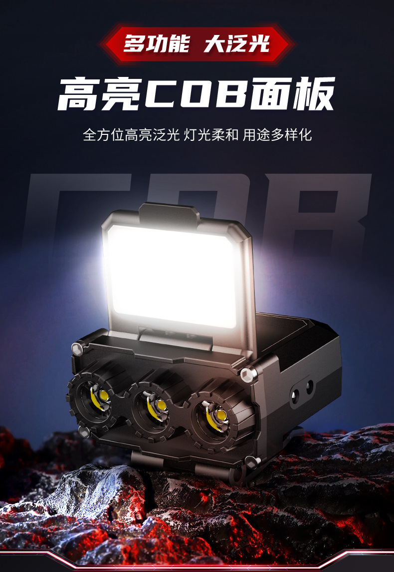 국경 간 새로운 강한 빛 모자 빛 LED 지능형 유도 경량 헤드 램프 USB 야외 비상 조명 작업 헤드 램프