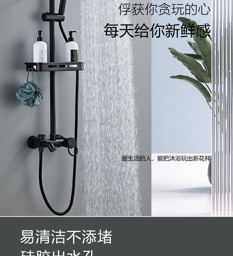 공장 도매 구리 수도꼭지 샤워 헤드 세트 Ming 은폐 된 가정용 샤워 샤워 헤드 블랙
