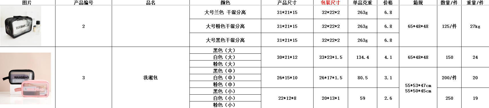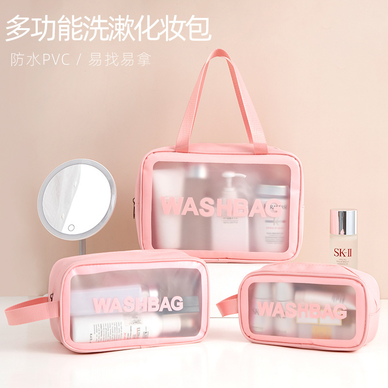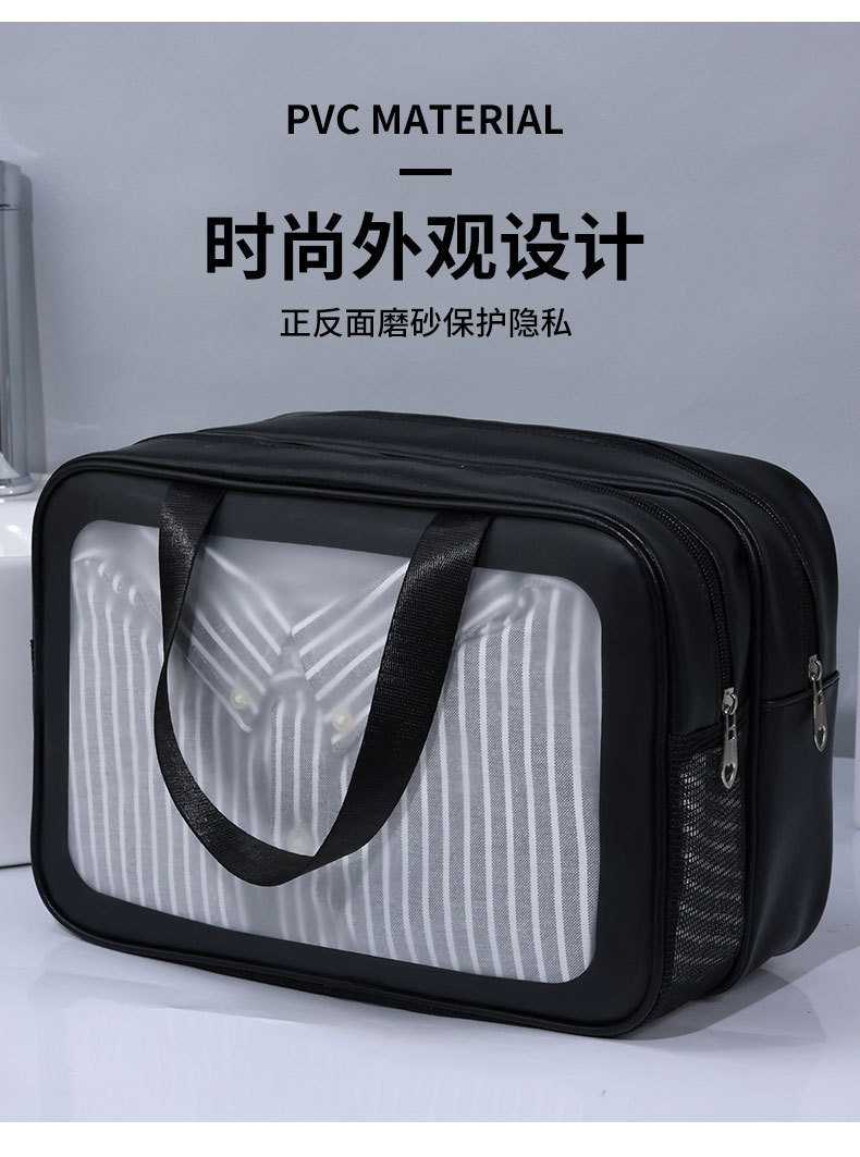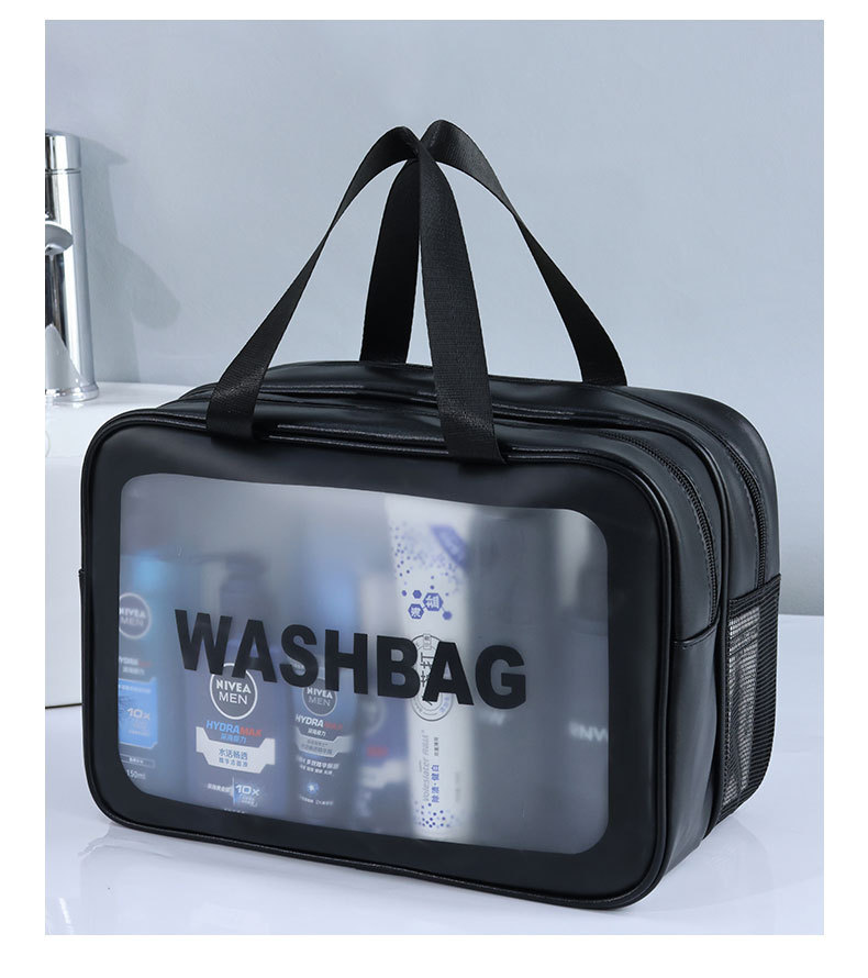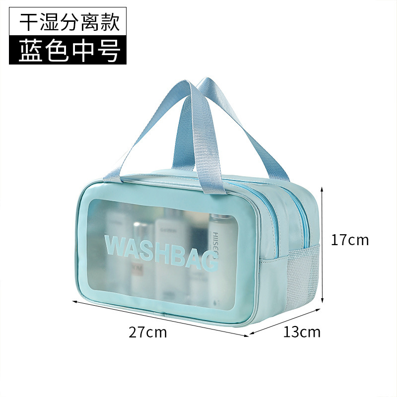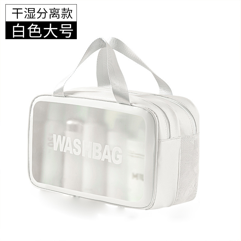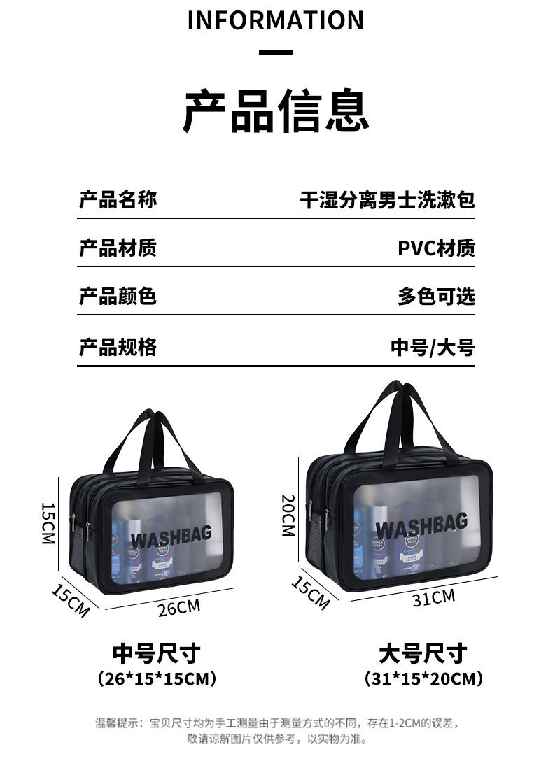 습식 및 건식 분리 이중층 투명 Pu 화장품 가방 남성용 휴대용 화장품 보관 가방 여행 가방 세탁 가방