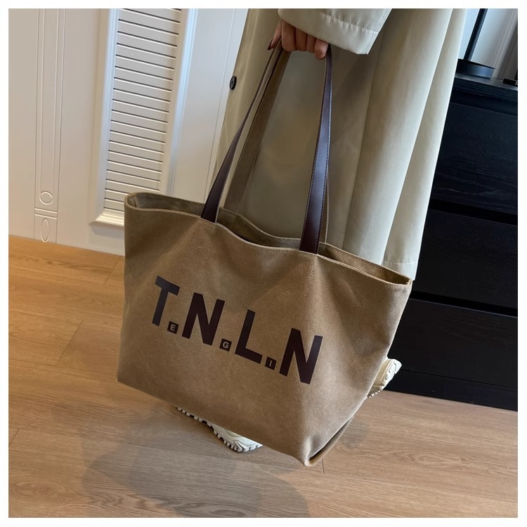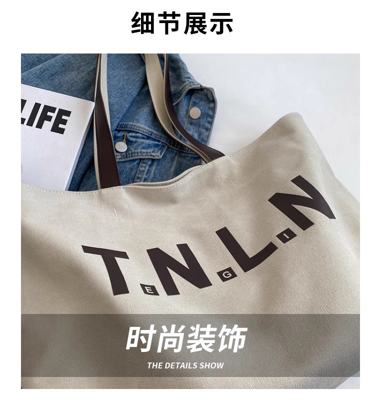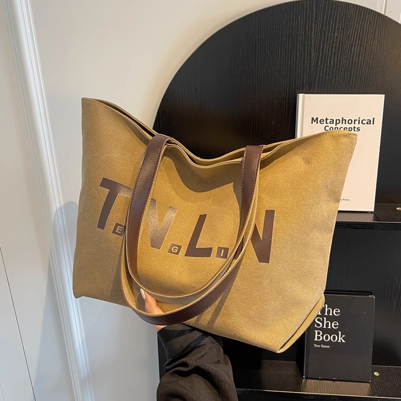 대용량 캔버스 가방 여성의 2024 새로운 어깨 가방 캐주얼 올 매치 토트 백 대학 학생 클래스 가방스토어 가기