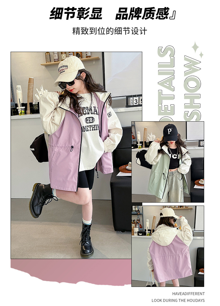 소녀 봄 재킷 2024 새로운 큰 아이들 한국 스타일 유행 캐주얼 중간 길이 재킷 지퍼 최고 가을