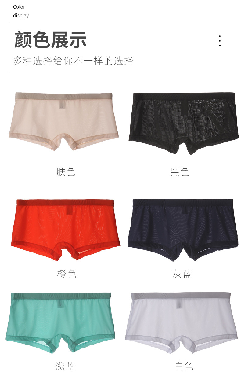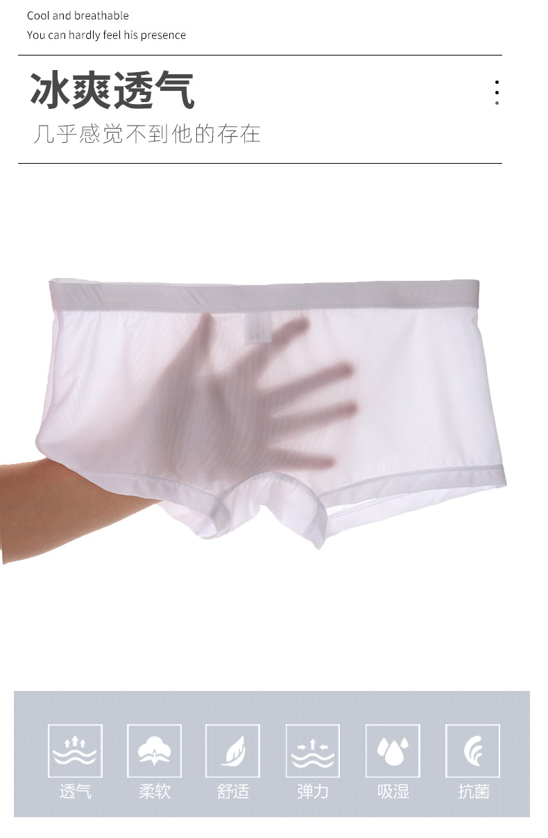 Junye 남성용 아이스 실크 속옷 없음 가방 투명 복서 얇은 낮은 허리 섹시한 통기성 남성 청소년 복서