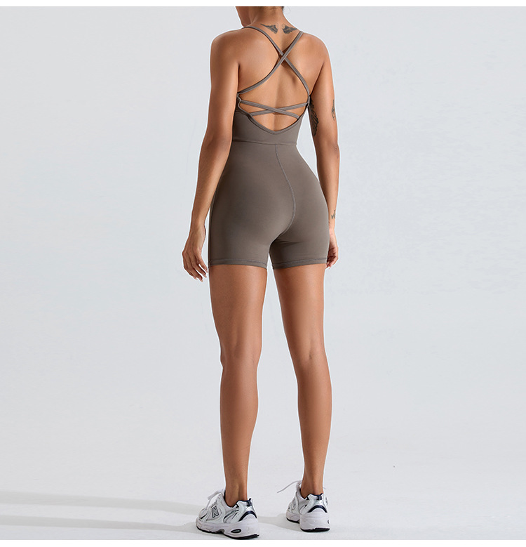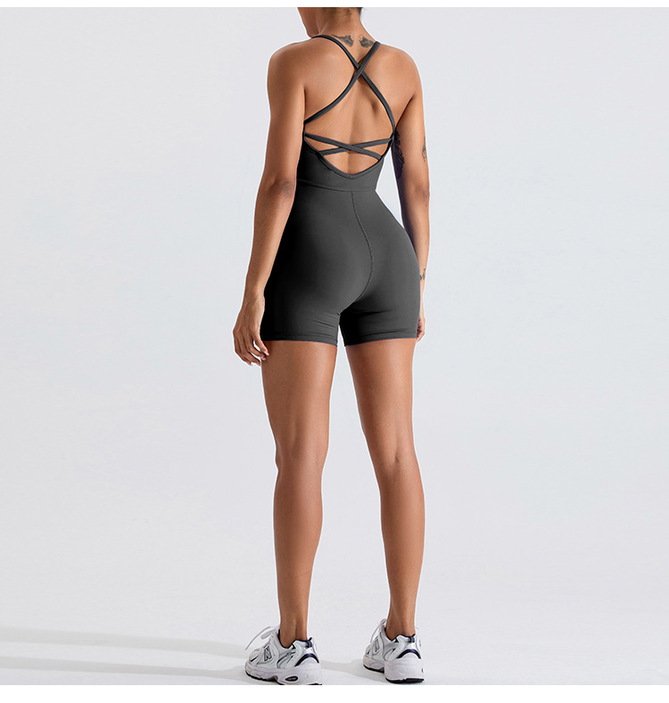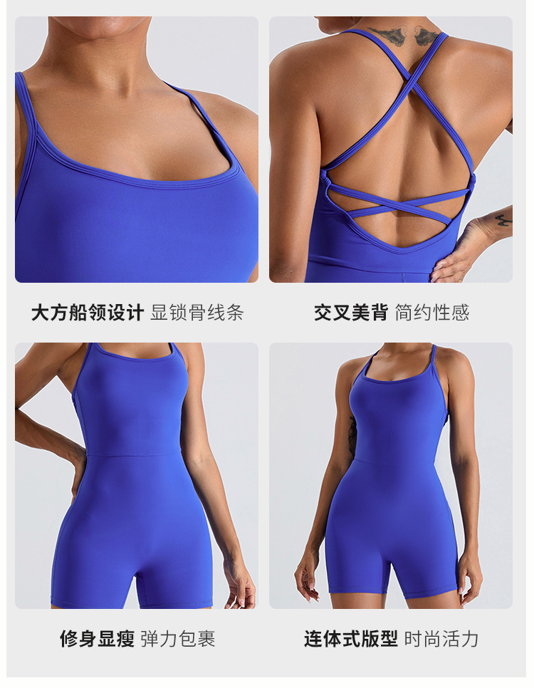 국경 간 새로운 요가 점프 수트 여성 할로우 크로스 백 타이트 슬리밍 엉덩이 리프팅 피트니스 원피스 스포츠웨어