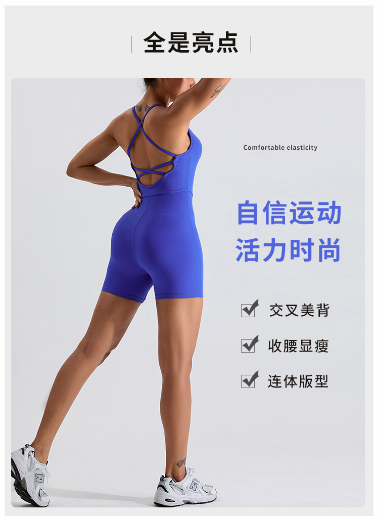 국경 간 새로운 요가 점프 수트 여성 할로우 크로스 백 타이트 슬리밍 엉덩이 리프팅 피트니스 원피스 스포츠웨어스토어 가기