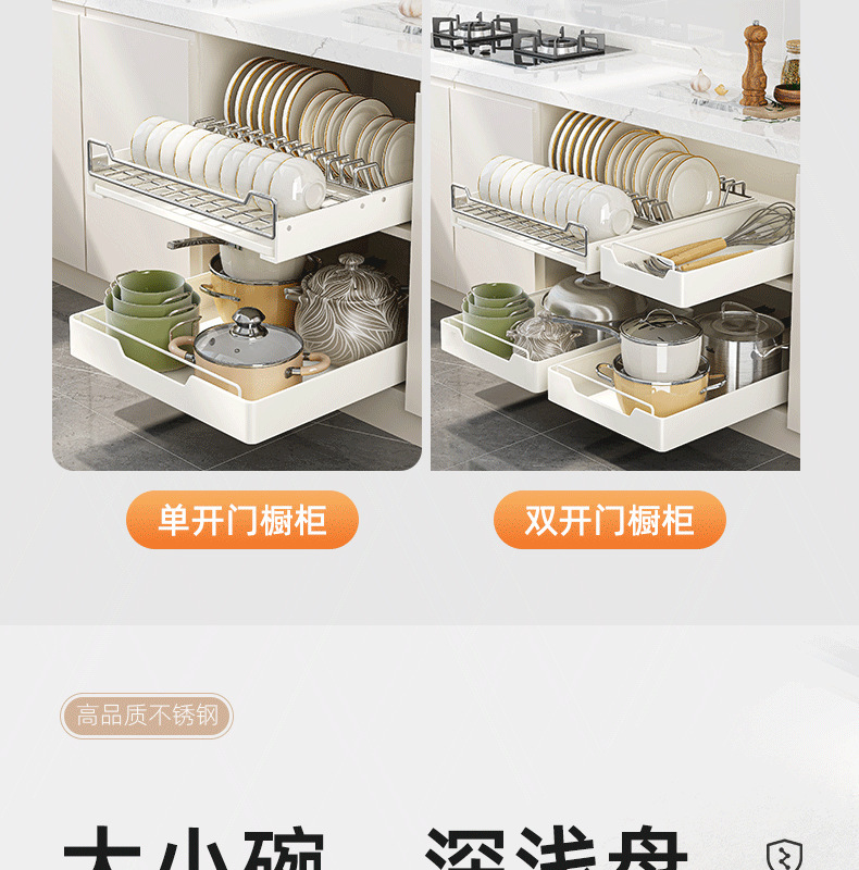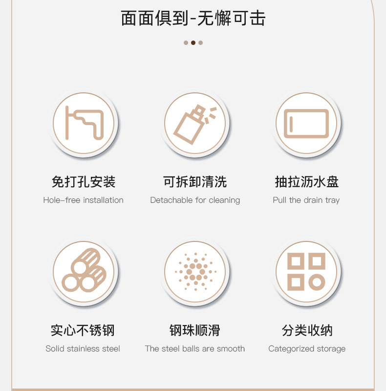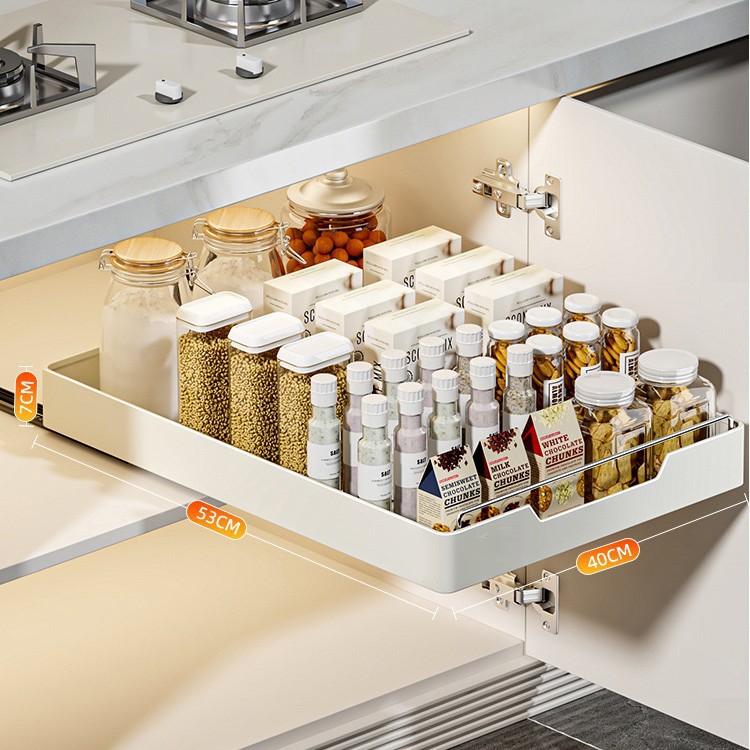 펀치없는 주방 캐비닛 풀 바구니 풀 아웃 식기 저장 랙 낮은 싱크 저장 랙 조미료 병 보관 상자스토어 가기