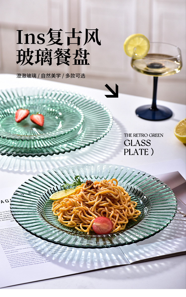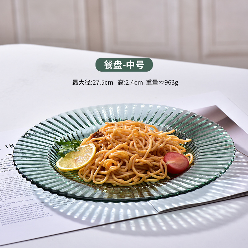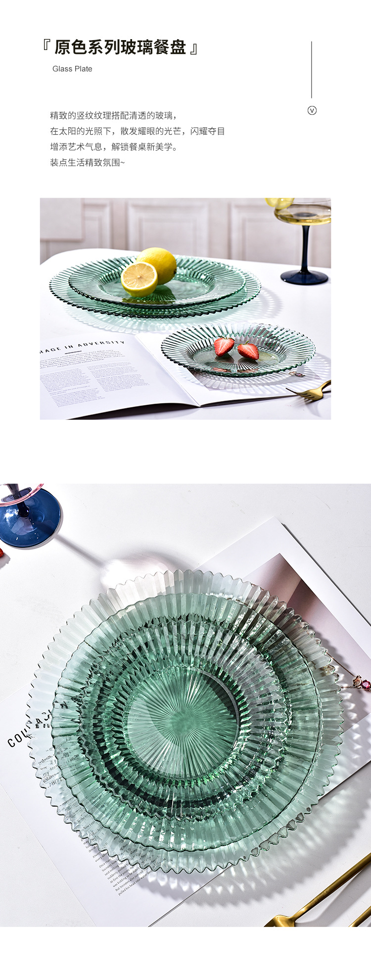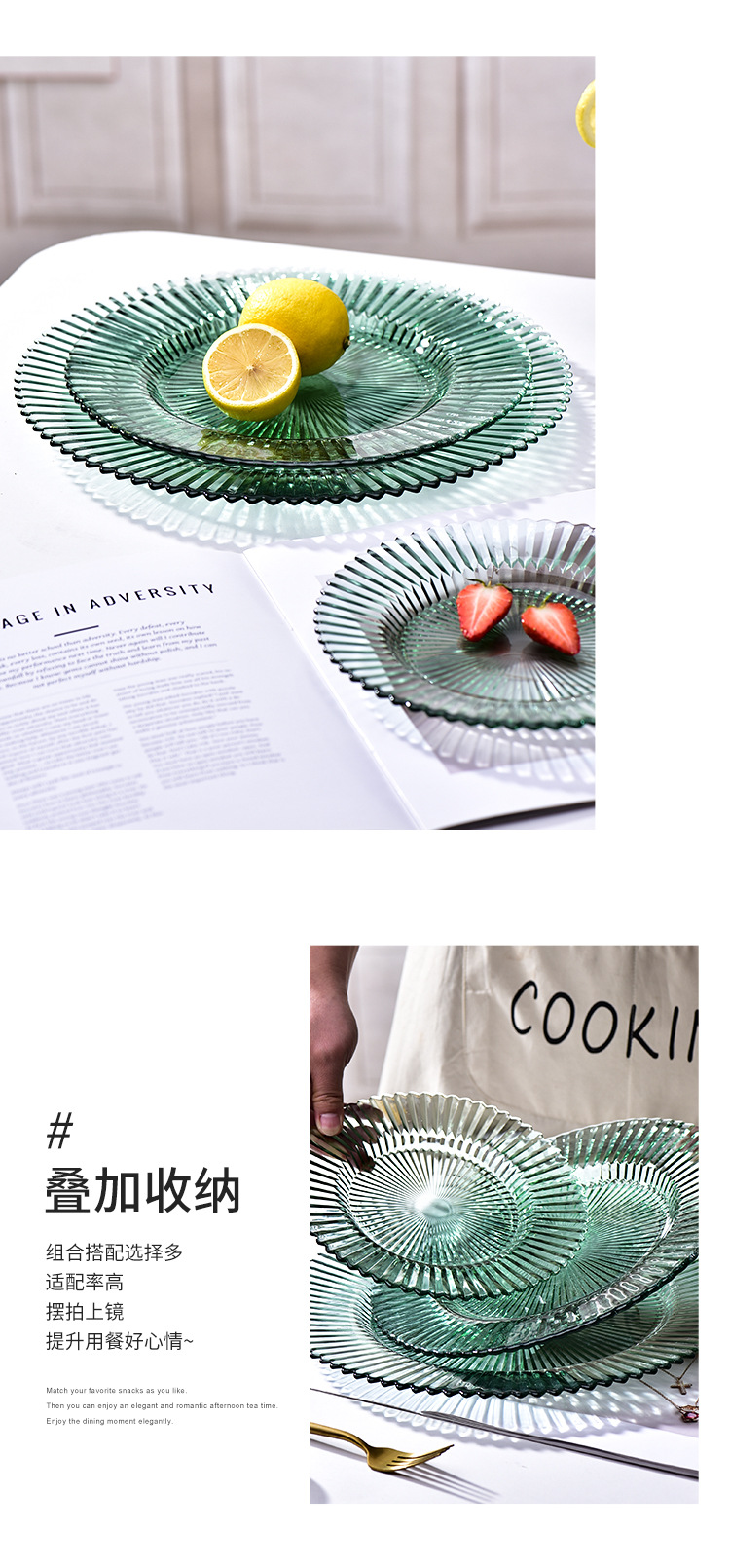 가정용 거실 종이 접는 패턴 유리 플레이트 컬러 대형 투명 과일 플레이트 도매 고급 서양 음식 매트 플레이트스토어 가기