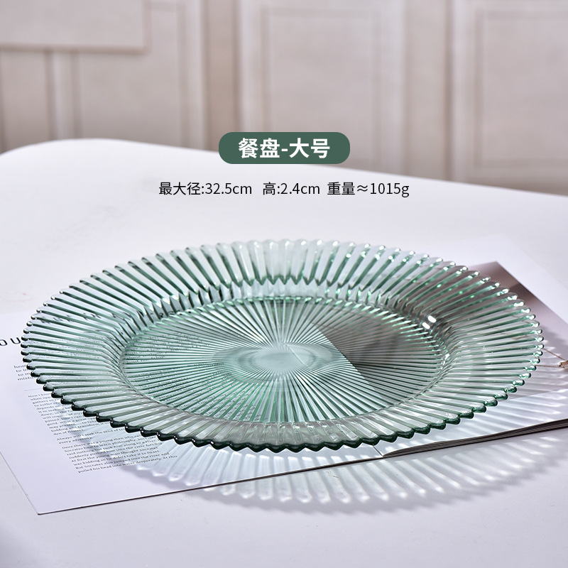 가정용 거실 종이 접는 패턴 유리 플레이트 컬러 대형 투명 과일 플레이트 도매 고급 서양 음식 매트 플레이트