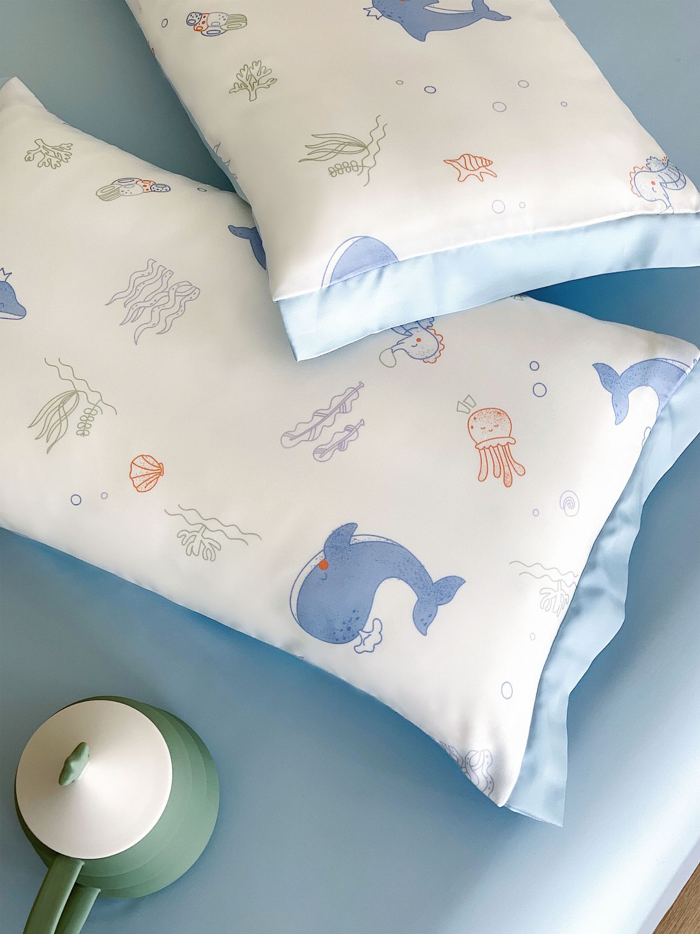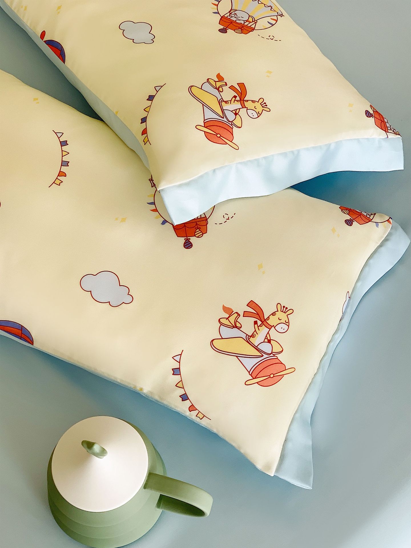 60 조각 Lanjing Tencel 어린이 베갯잇살 여름 아이스 실크 아기 베갯잇이 아기 작은 베갯잇살 유아용 베개 타월 세트