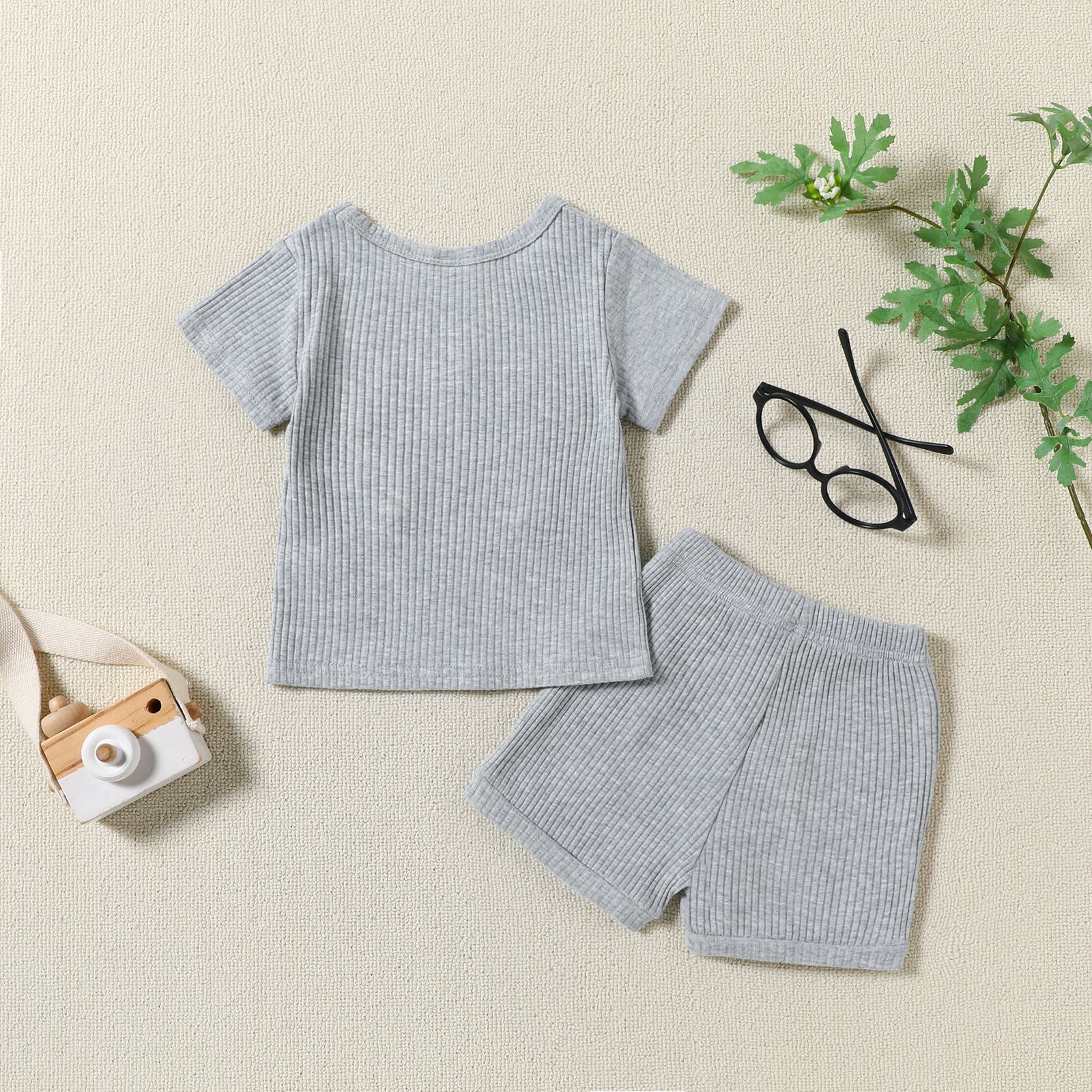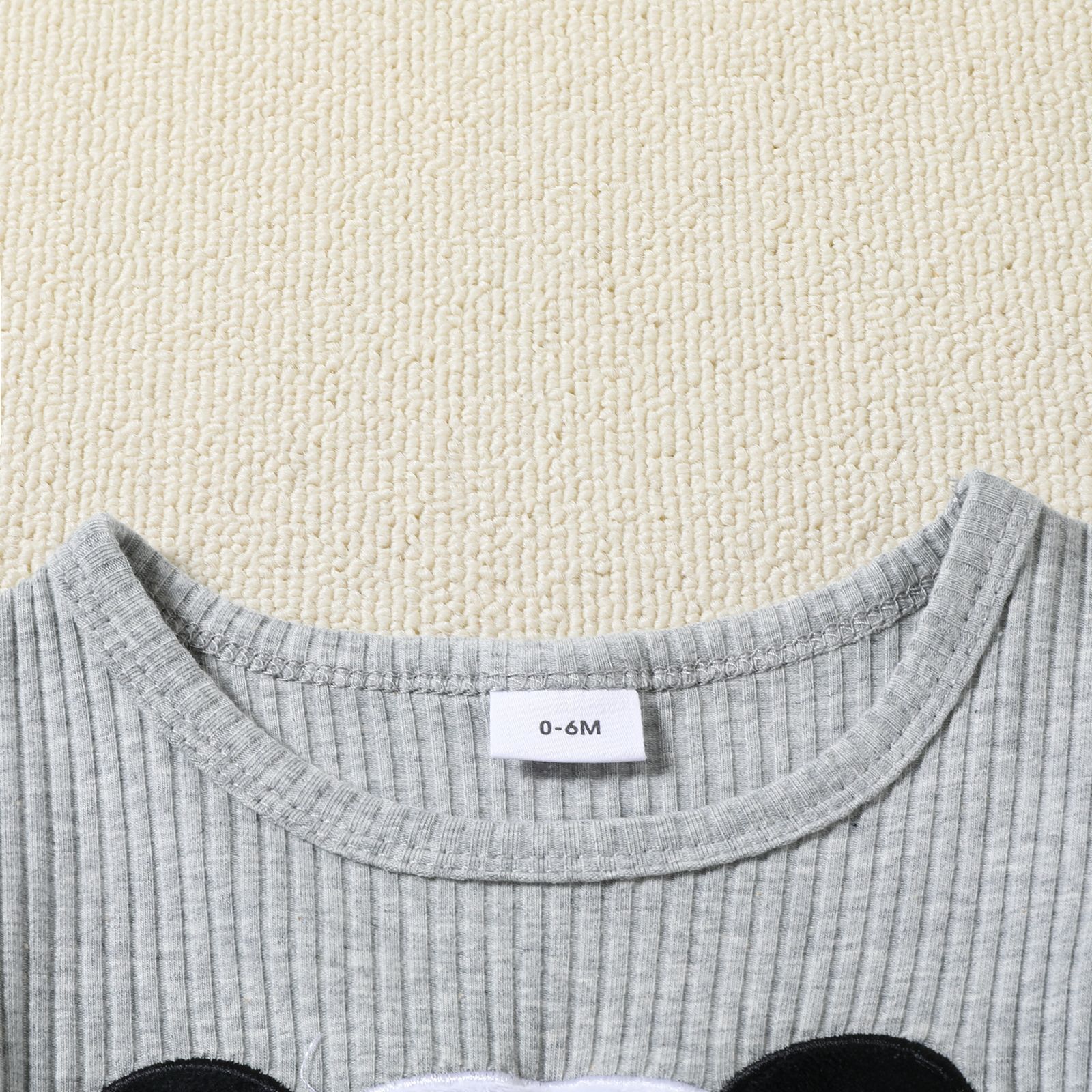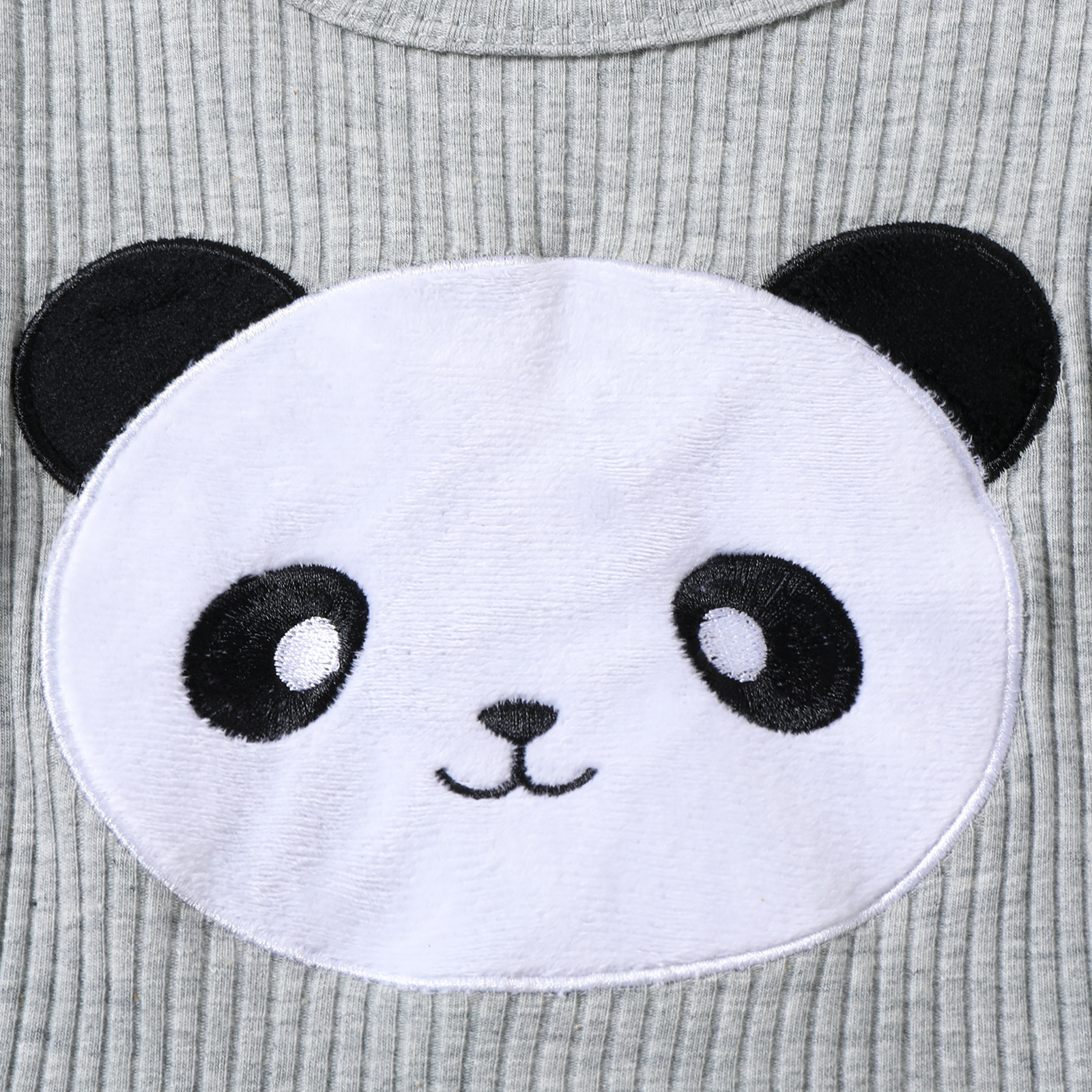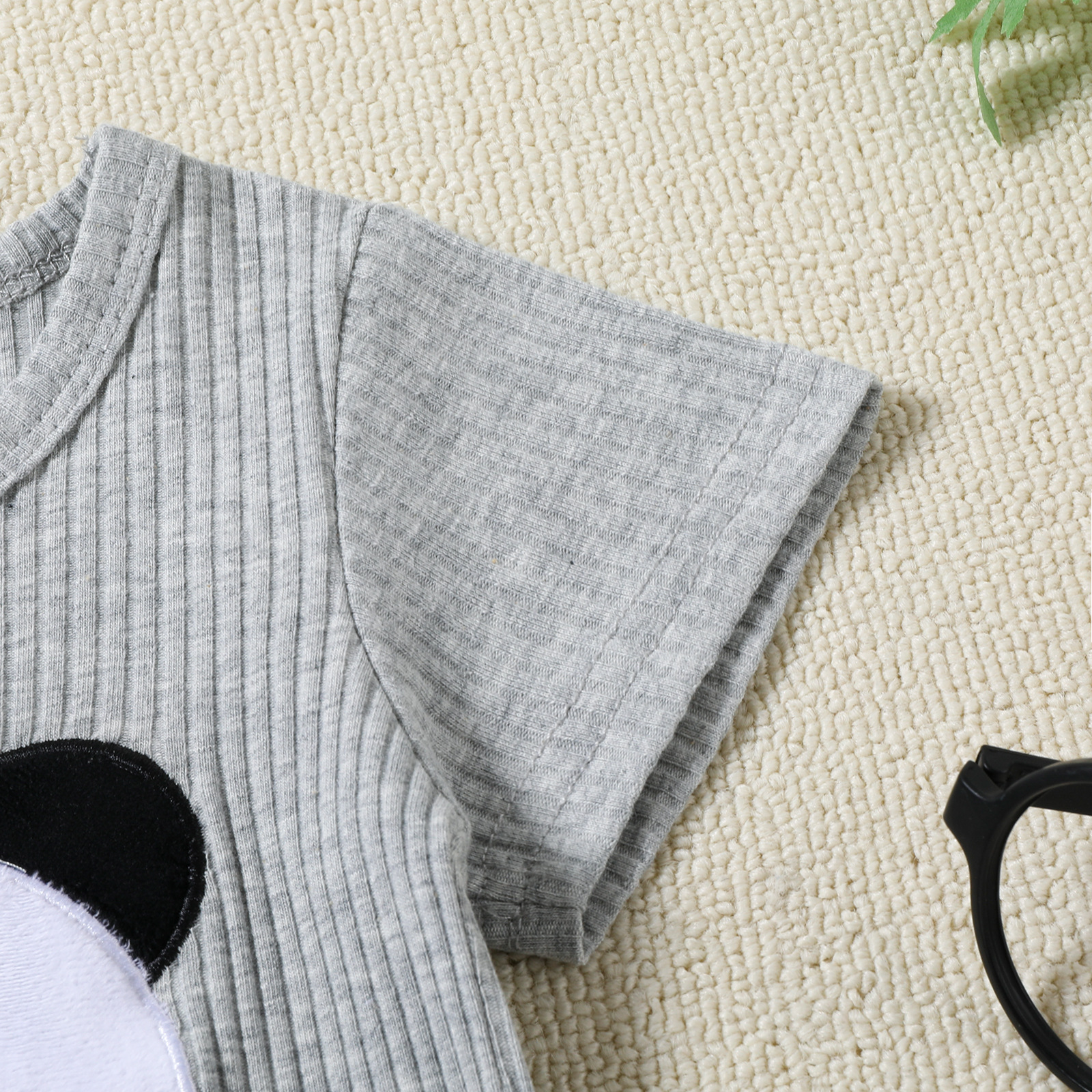 아마존 아동복 도매 소녀 팬더 패치 자수 티셔츠 + 단색 반바지 투피스 세트 여름 어린이 세트