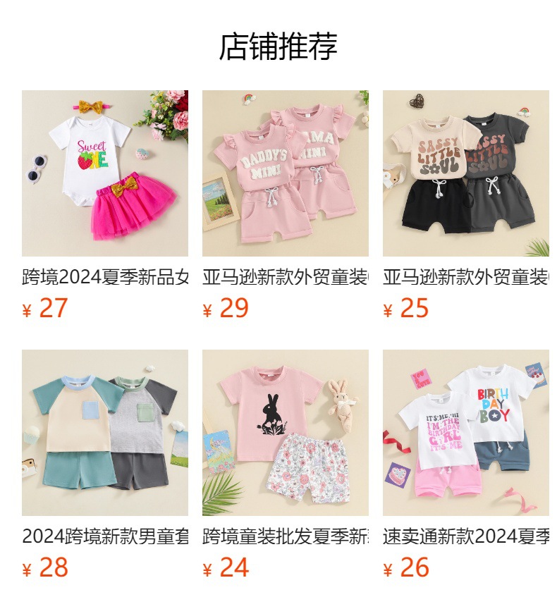아마존 아동복 도매 소녀 팬더 패치 자수 티셔츠 + 단색 반바지 투피스 세트 여름 어린이 세트스토어 가기