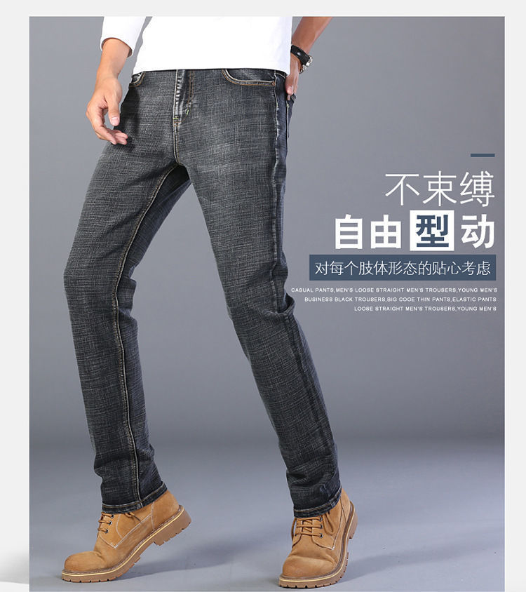 국경 간 뜨거운 판매 가을과 겨울 청바지 남성 스트레이트 느슨한 캐주얼 스트레칭 두꺼운 다목적 비즈니스 중년 및 젊은 바지