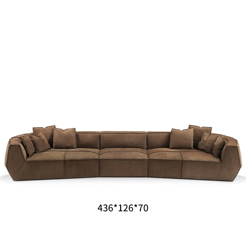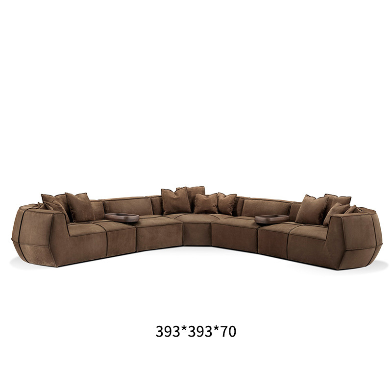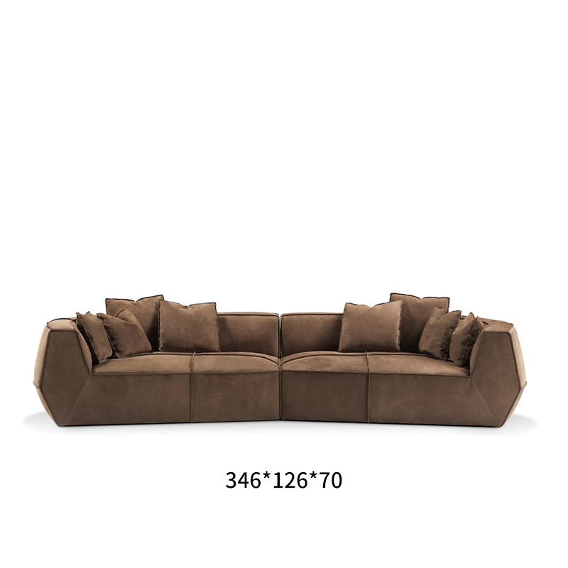 이탈리아 스타일의 가벼운 고급 가죽 소파 특별한 모양의 빌라 거실 3인용 반투명 1층 소가죽 소파 가구 조합스토어 가기
