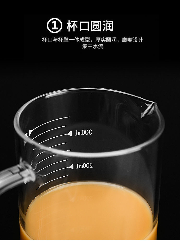 높은 borosilicate 스케일 측정 컵 가정용 전자 레인지 손잡이 어린이 우유 컵이있는 고온 내성 유리 비커스토어 가기