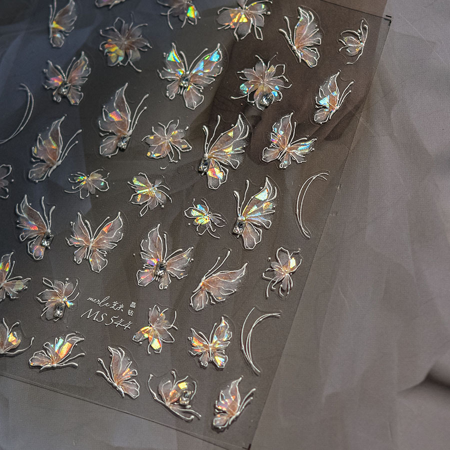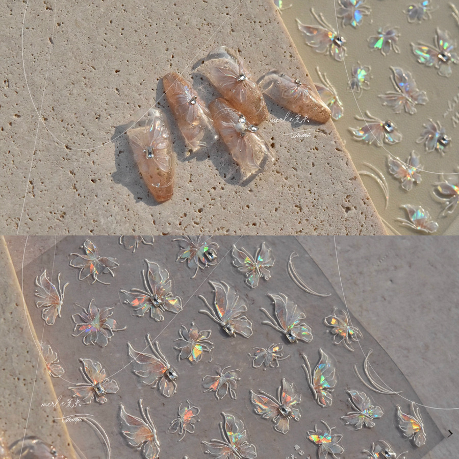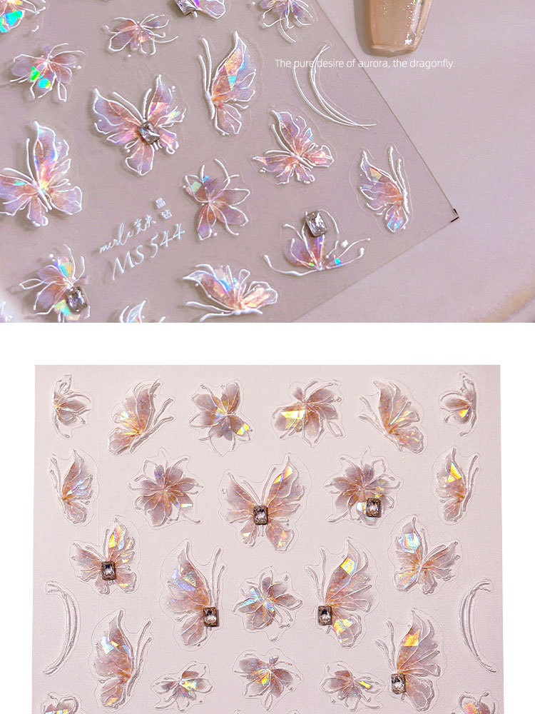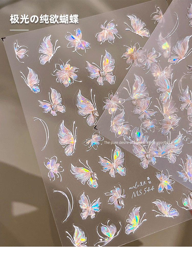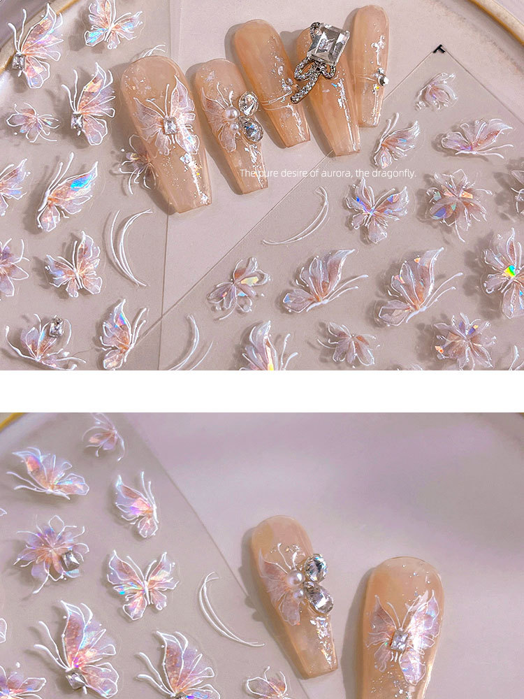 새로운 일본 온라인 유명인 오로라 순수한 욕망 소녀 나비 네일 스티커 양각 화려한 네일 데칼 장식 도매