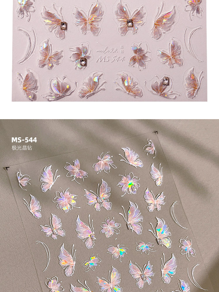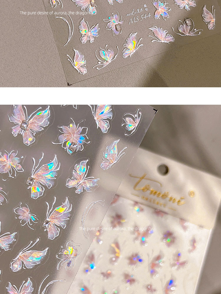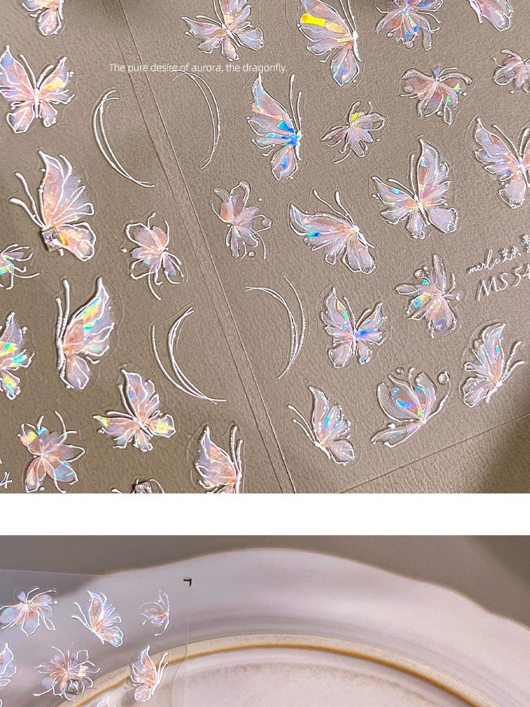 새로운 일본 온라인 유명인 오로라 순수한 욕망 소녀 나비 네일 스티커 양각 화려한 네일 데칼 장식 도매스토어 가기
