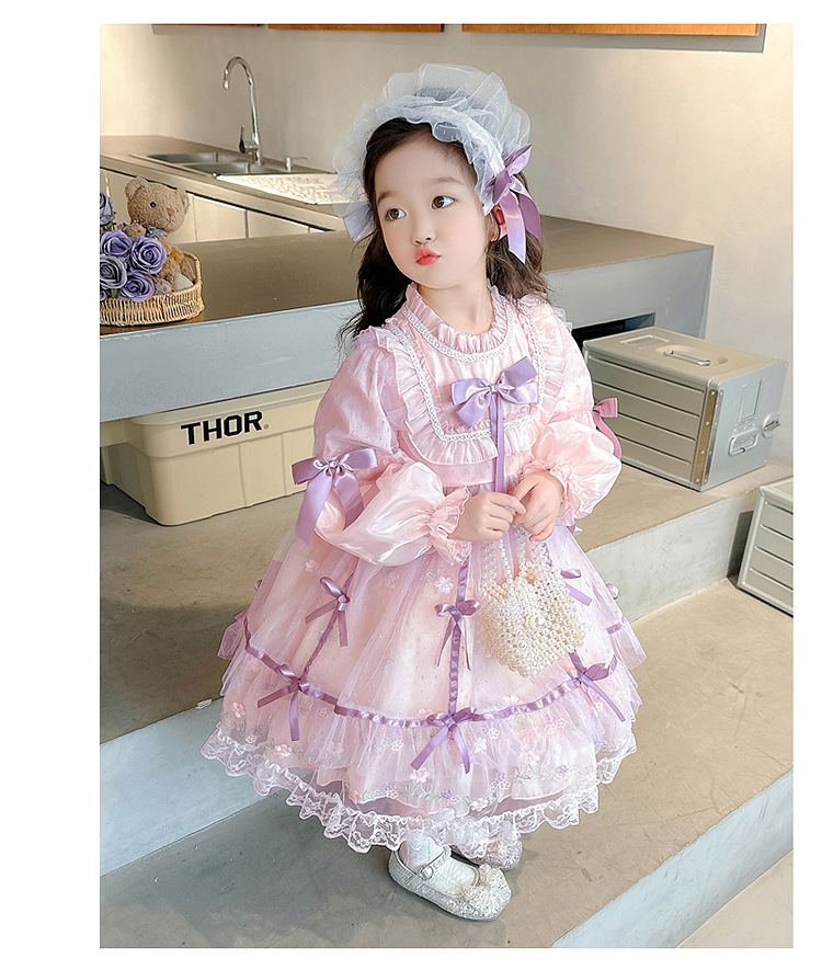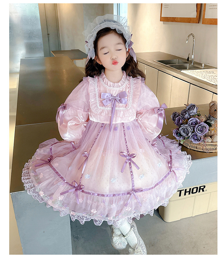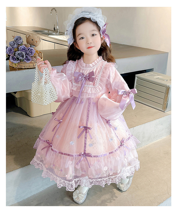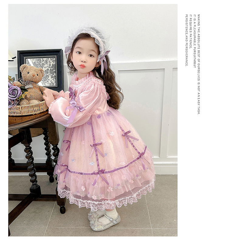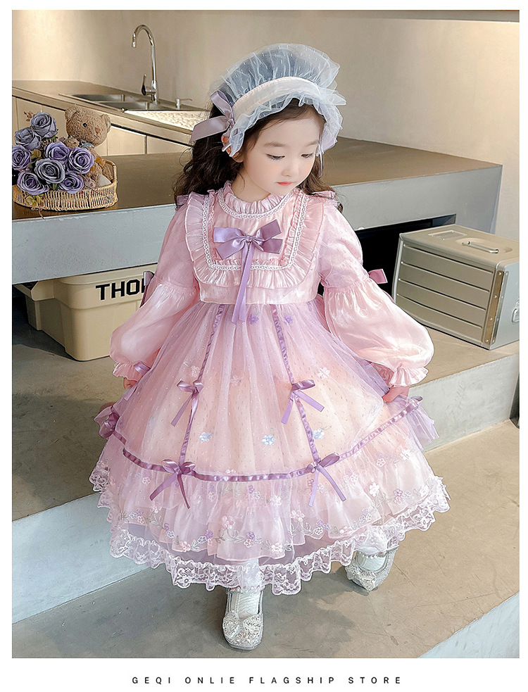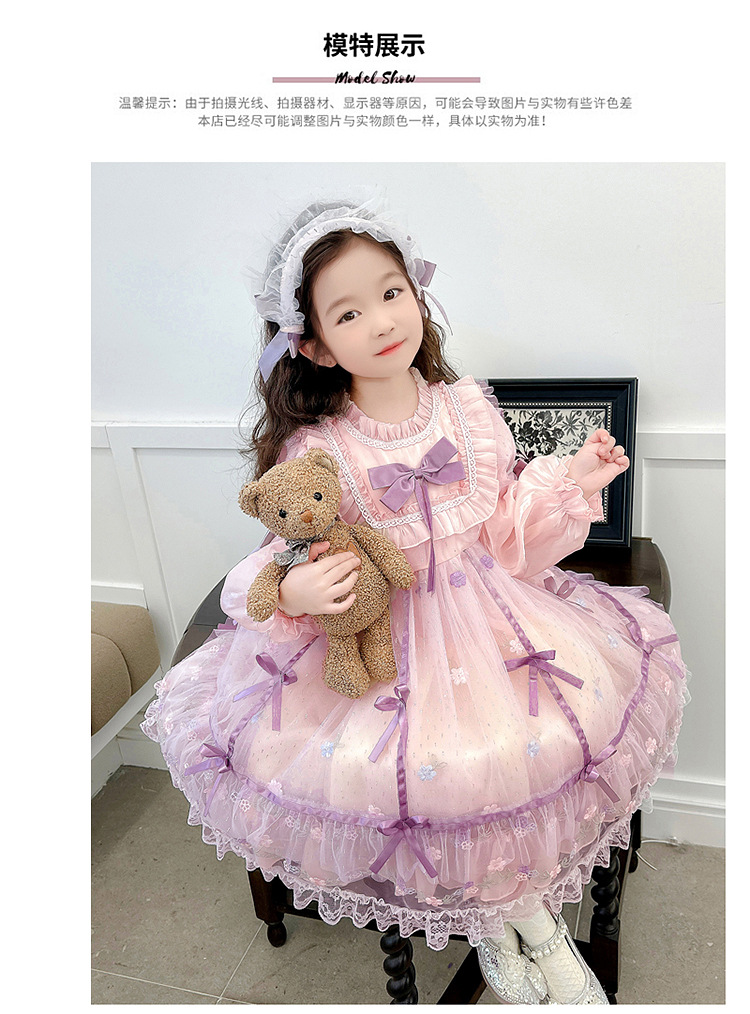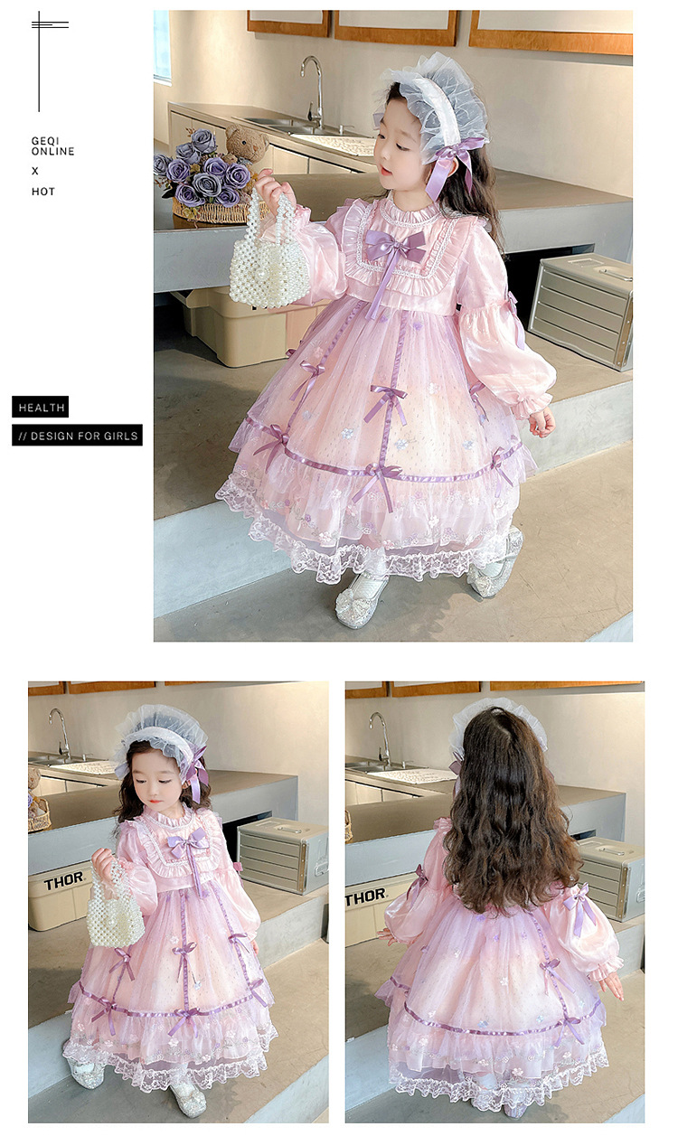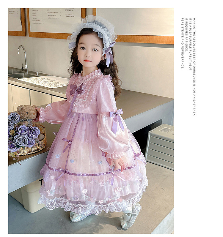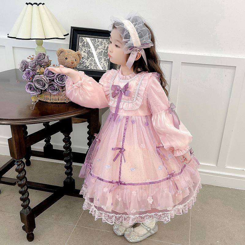 어린 소녀 봄과 가을 로리타 공주 원피스 2025 긴 소매 나비 레이스 원피스 어린이 생일 원피스 국경스토어 가기