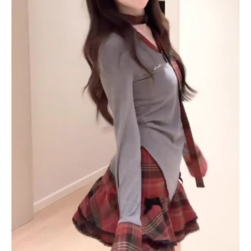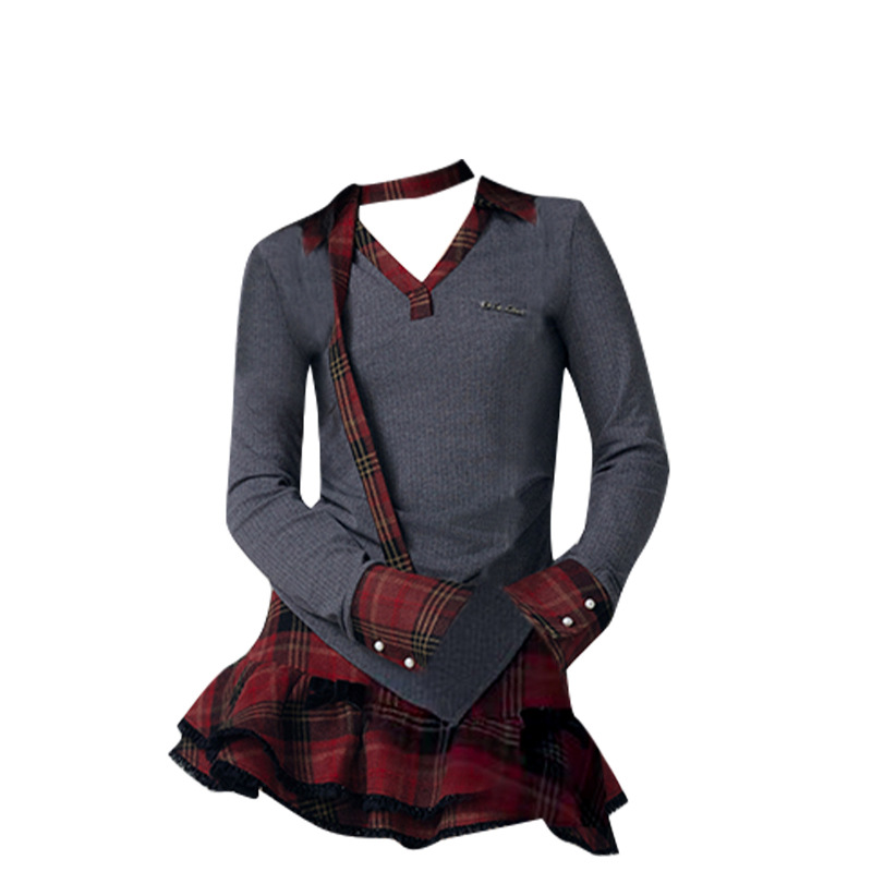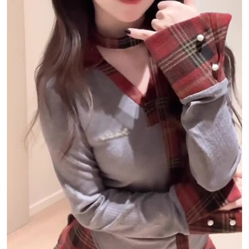 여성용 프레피 스타일 슬림 핏 스웨터 봄 새로운 대비 컬러 스티칭 슬리밍 셔츠 하이 웨이스트 핫 소녀 긴팔 탑