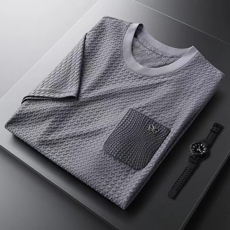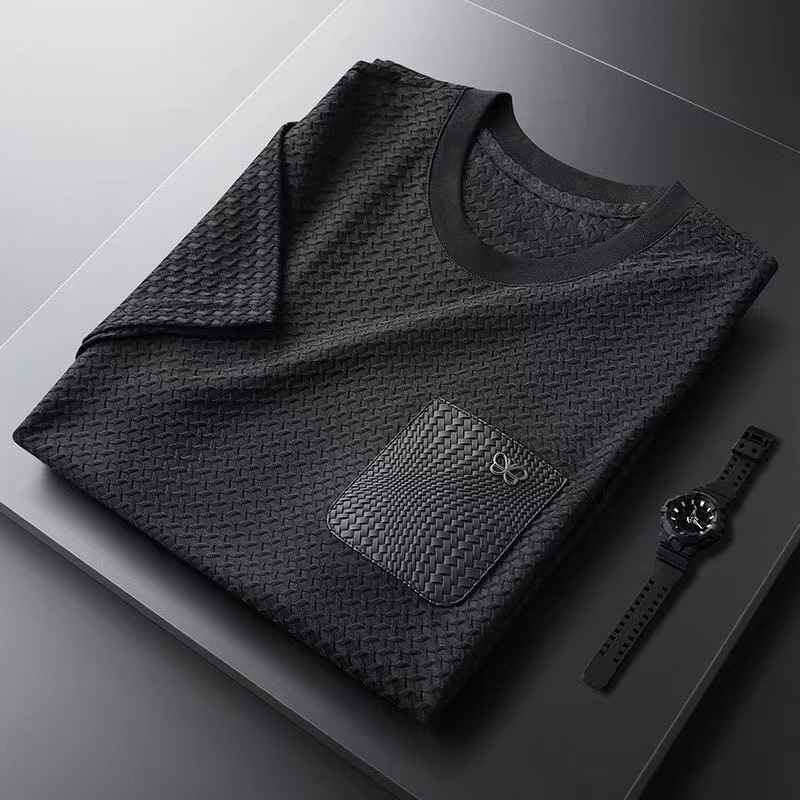 고급 탄성 아이스 실크 하운스 투스 티셔츠 남성용 여름 캐주얼 슬림 핏 하이 엔드 라운드 넥 쇼트 슬리브 의류 남성 하프 슬리브