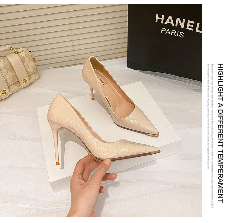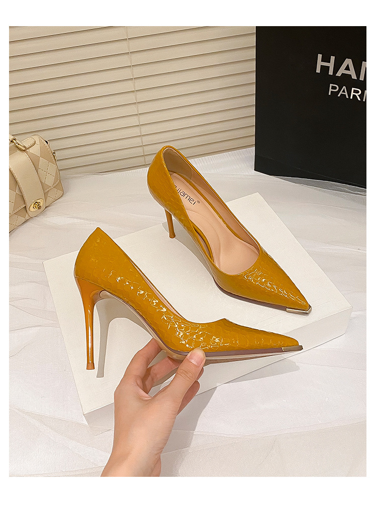2025년 봄 신상 여성용 하이힐, 슬림 힐, 오렌지색 정장 구두, 베이지색 철제 앞코 여성 구두, 싱글 슈즈, 얕은 굽스토어 가기