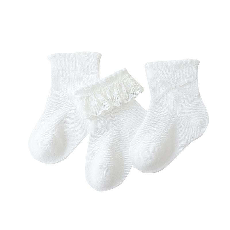 봄과 여름 흰색 아기 양말 면 메쉬 통기성 뼈없는 공주 바람 아기 양말 얇은 여자 레이스 양말 도매