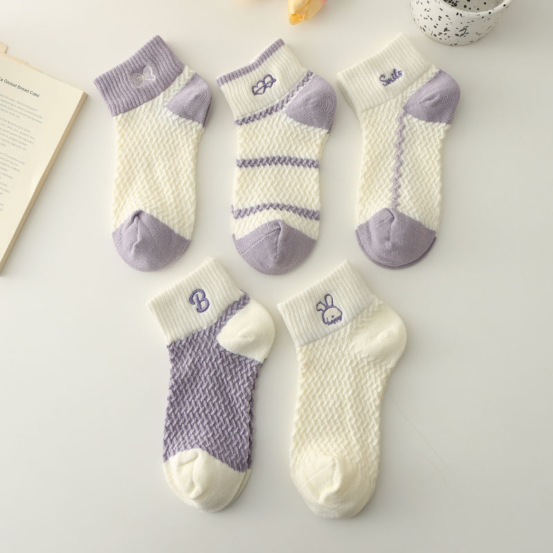여성의 봄과 여름 얇은면 양말 땀 흡수성 통기성 메쉬 비 냄새 나는 발 달콤한 보라색 학생 짧은 양말