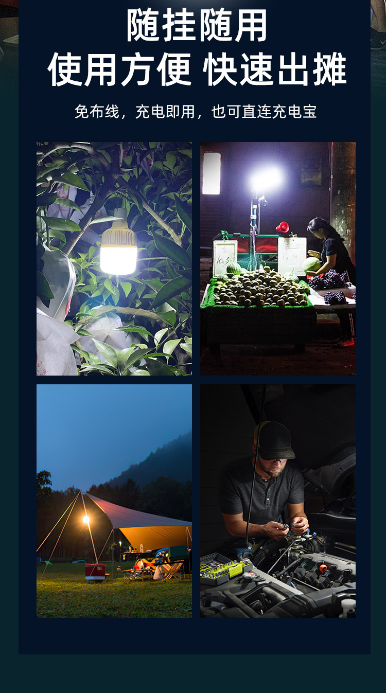 Led 충전식 전구 야외 휴대용 캠핑 야시장 스톨 라이트 USB 충전식 비상 조명 정전 조명 전구