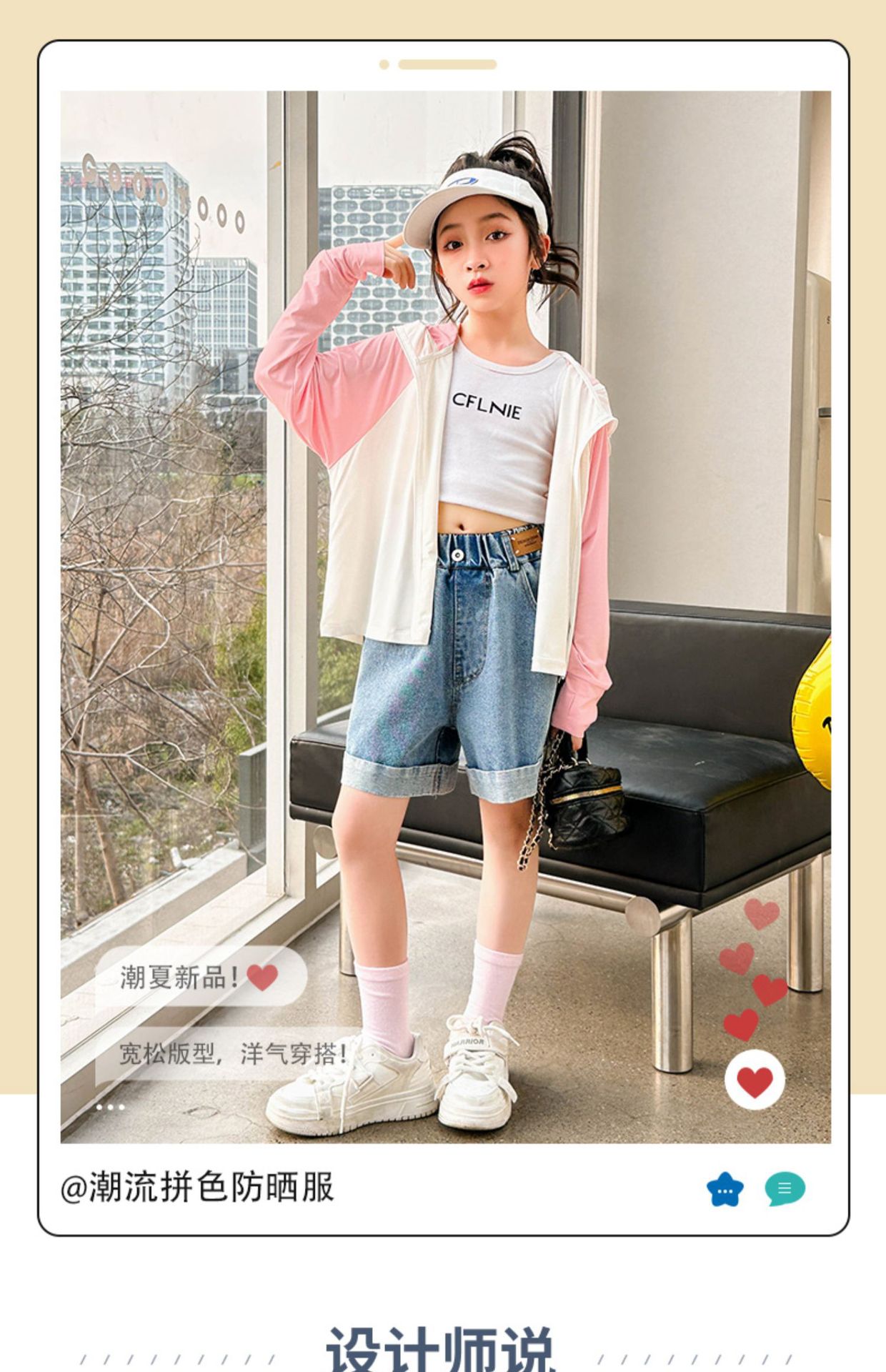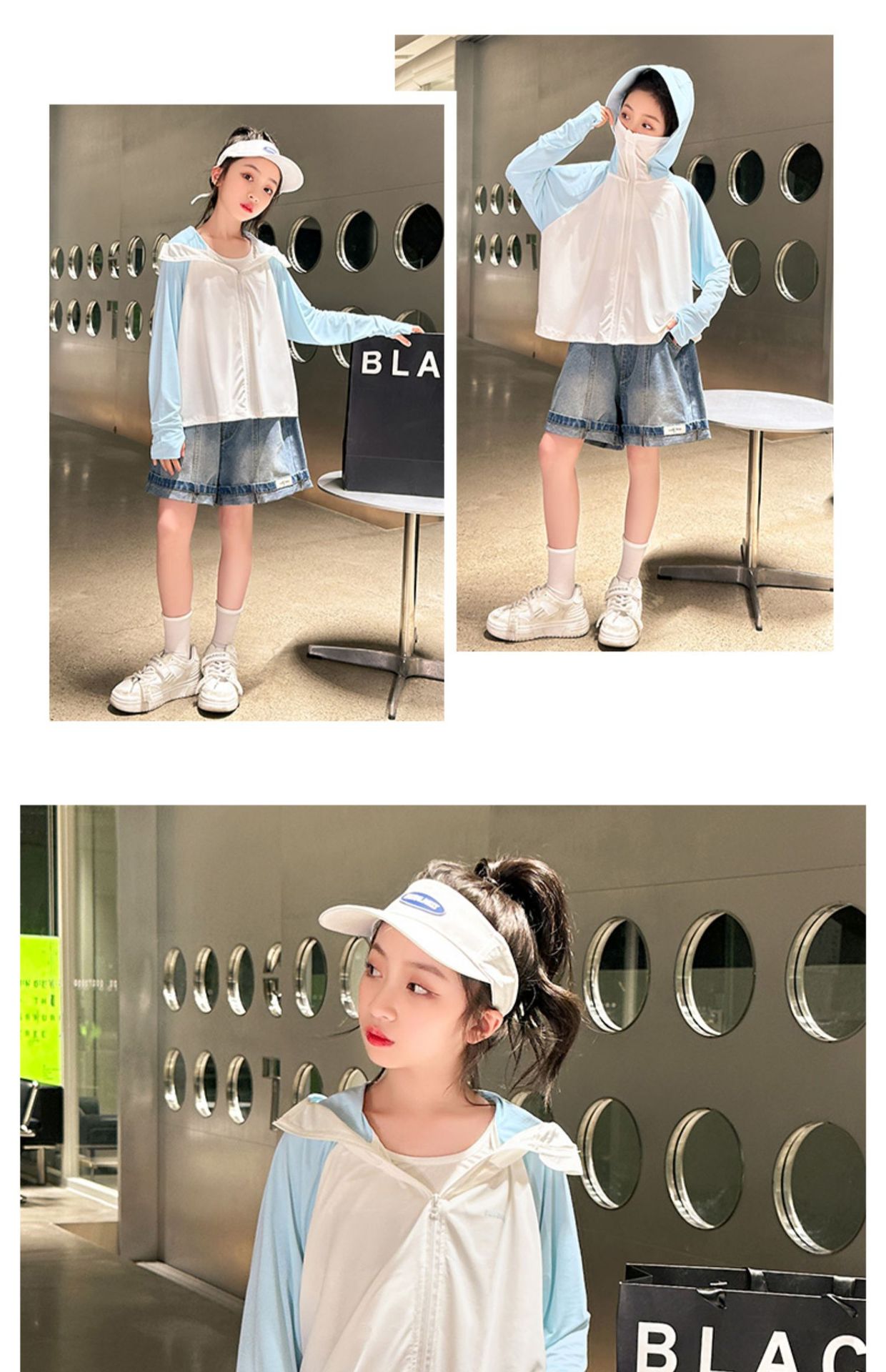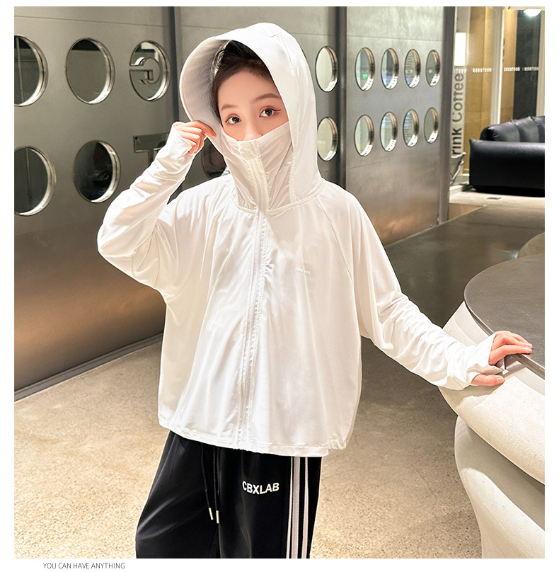 소녀의 태양 보호 의류 여름 얇은 2024 새로운 어린이 통기성 자외선 보호 소녀 나이 많은 소녀의 얼음 실크 태양 보호 코트스토어 가기