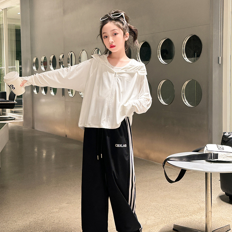 소녀의 태양 보호 의류 여름 얇은 2024 새로운 어린이 통기성 자외선 보호 소녀 나이 많은 소녀의 얼음 실크 태양 보호 코트