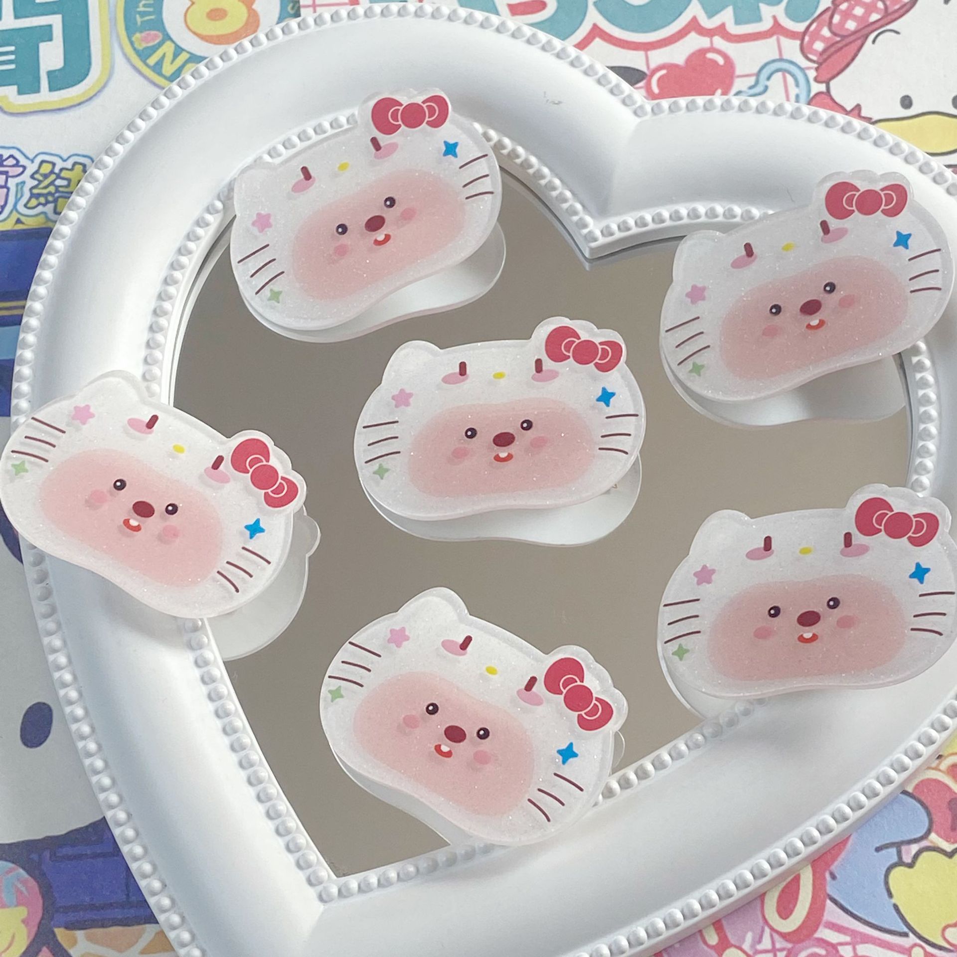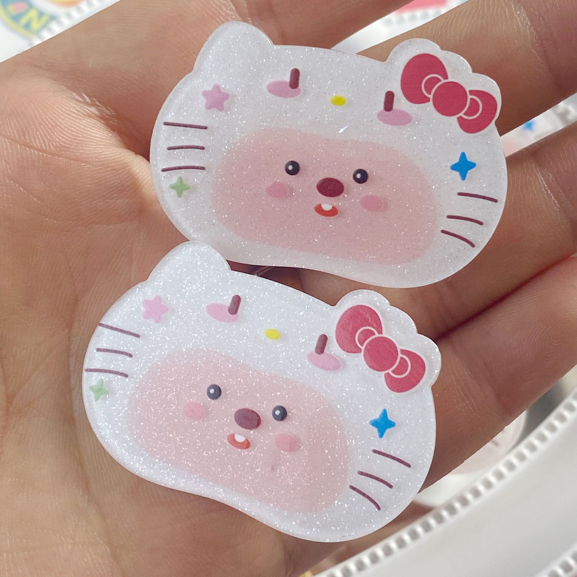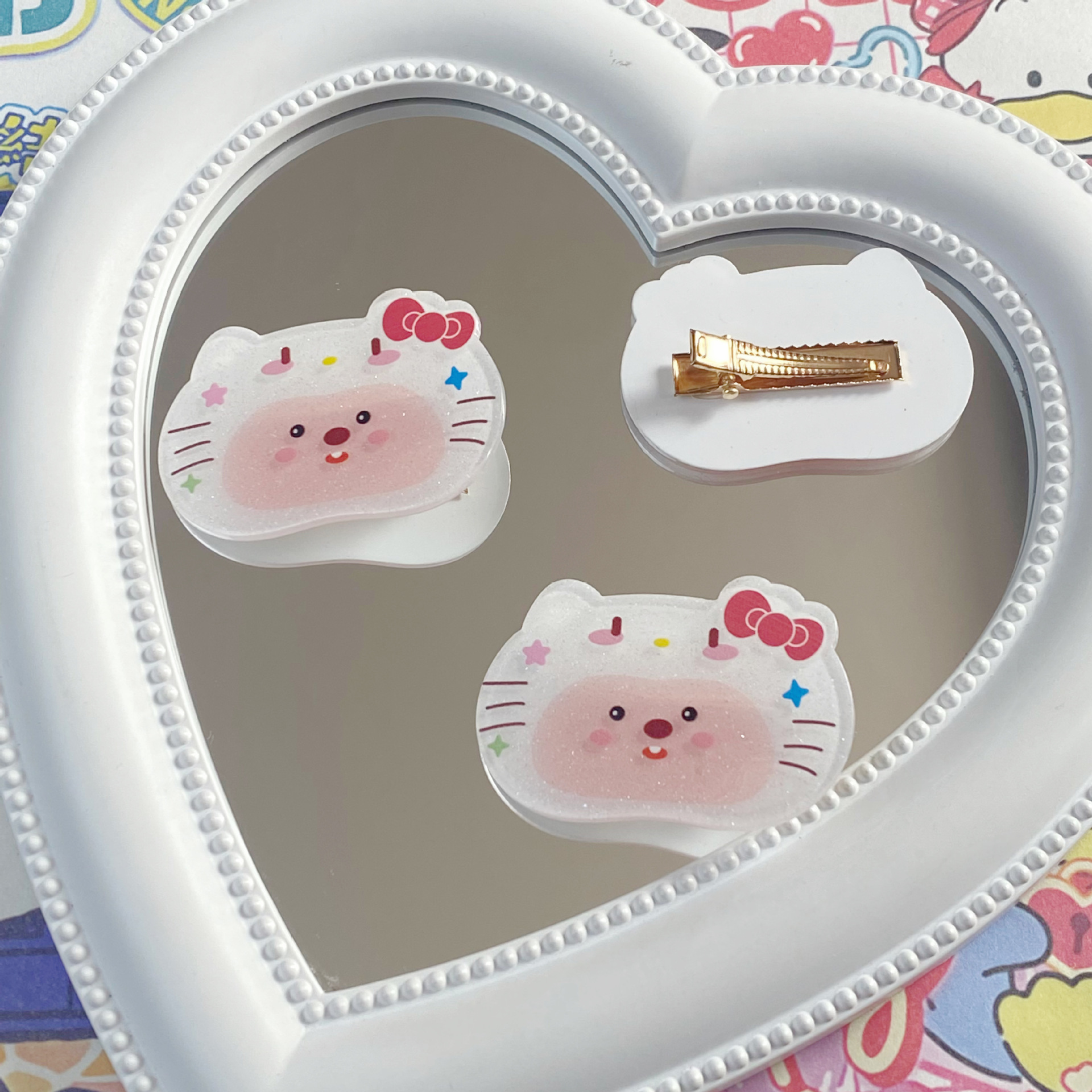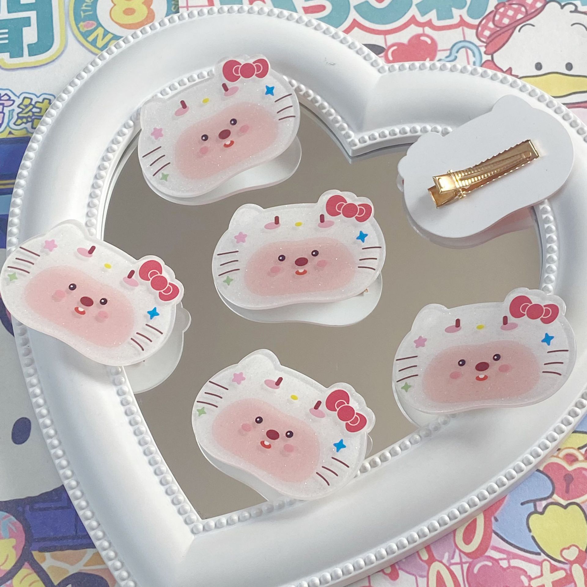 만화 귀여운 비버 고양이 아크릴 조각 덕빌 클립 귀여운 소녀 학생 소녀 하트 앞머리 클립 사이드 클립 헤어 액세서리