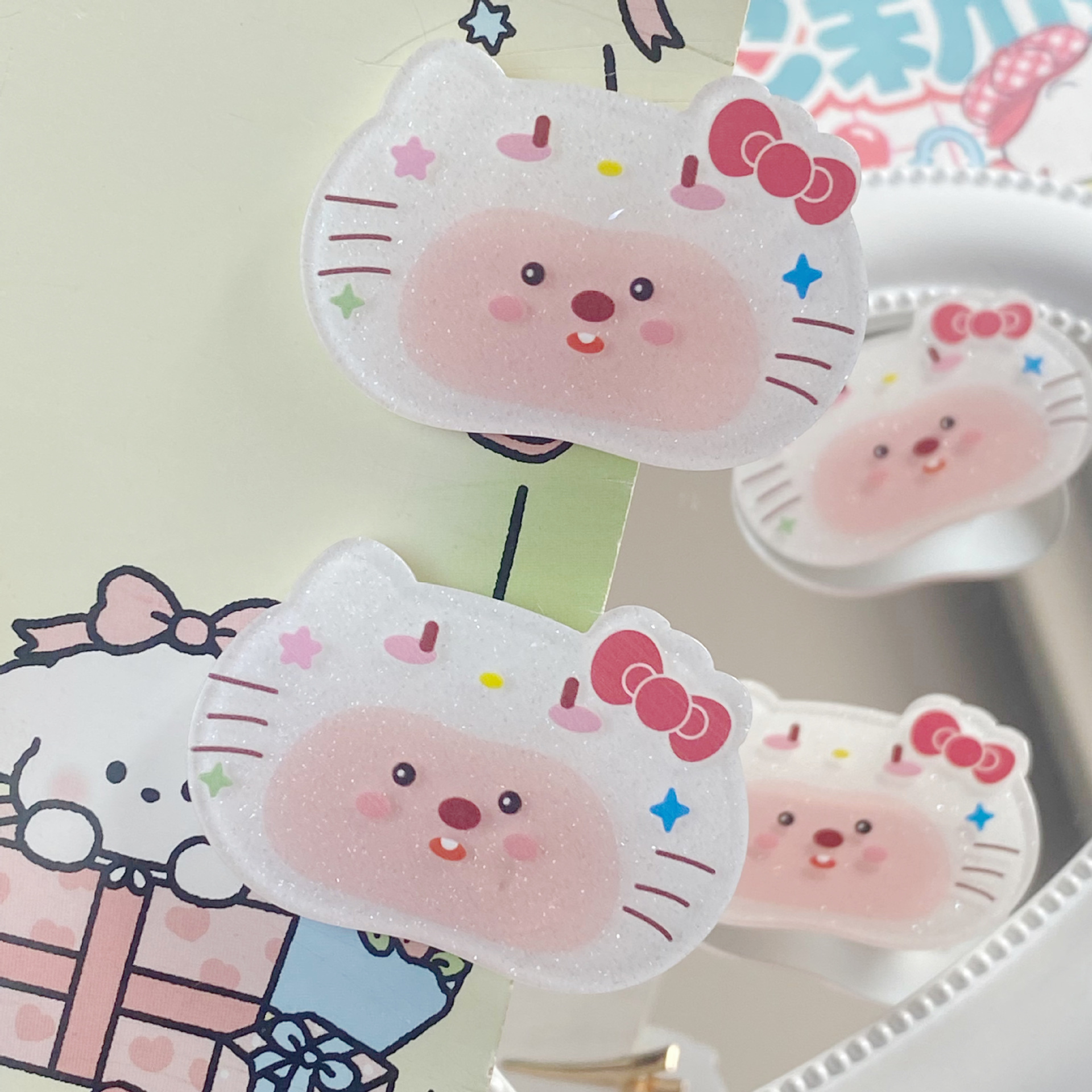만화 귀여운 비버 고양이 아크릴 조각 덕빌 클립 귀여운 소녀 학생 소녀 하트 앞머리 클립 사이드 클립 헤어 액세서리스토어 가기