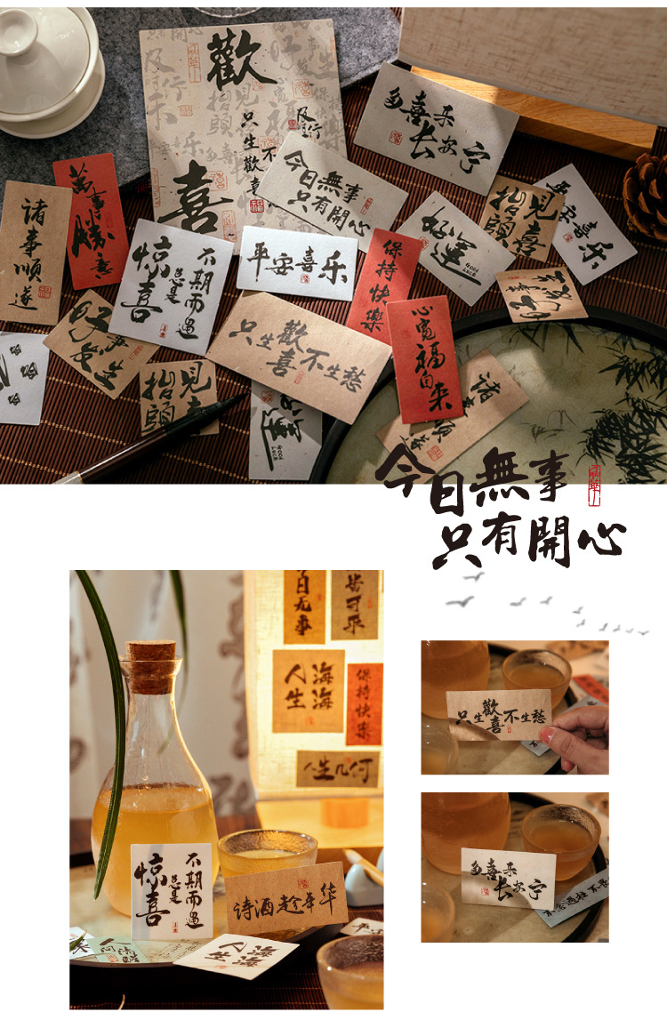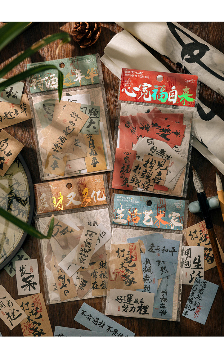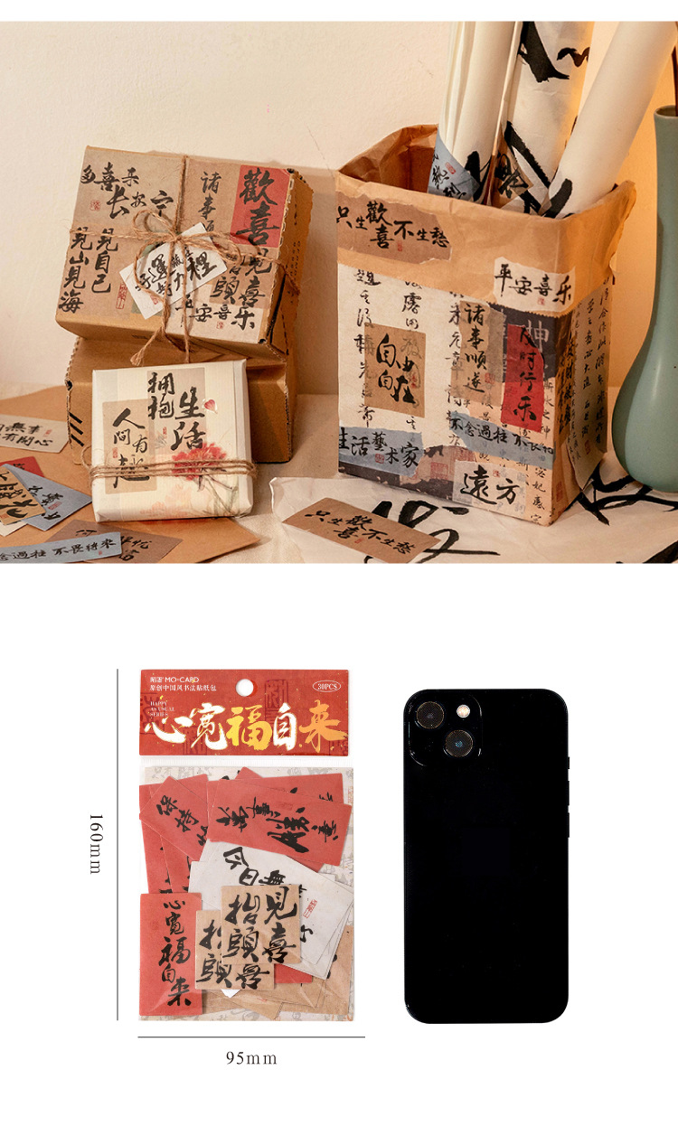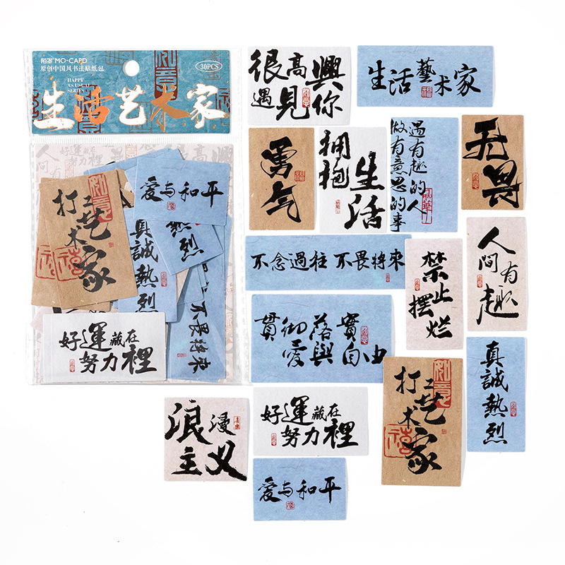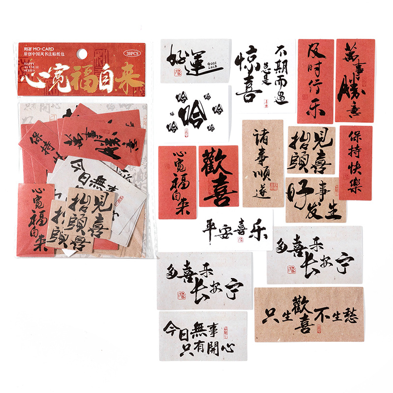Mo Mo Mo Heyi 종이 스티커 패키지 평소와 같이 행복 한 시리즈 내셔널 스타일 서예 저널 소재 장식 스티커 30 개 4 가지 유형