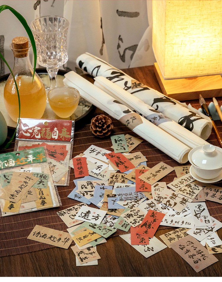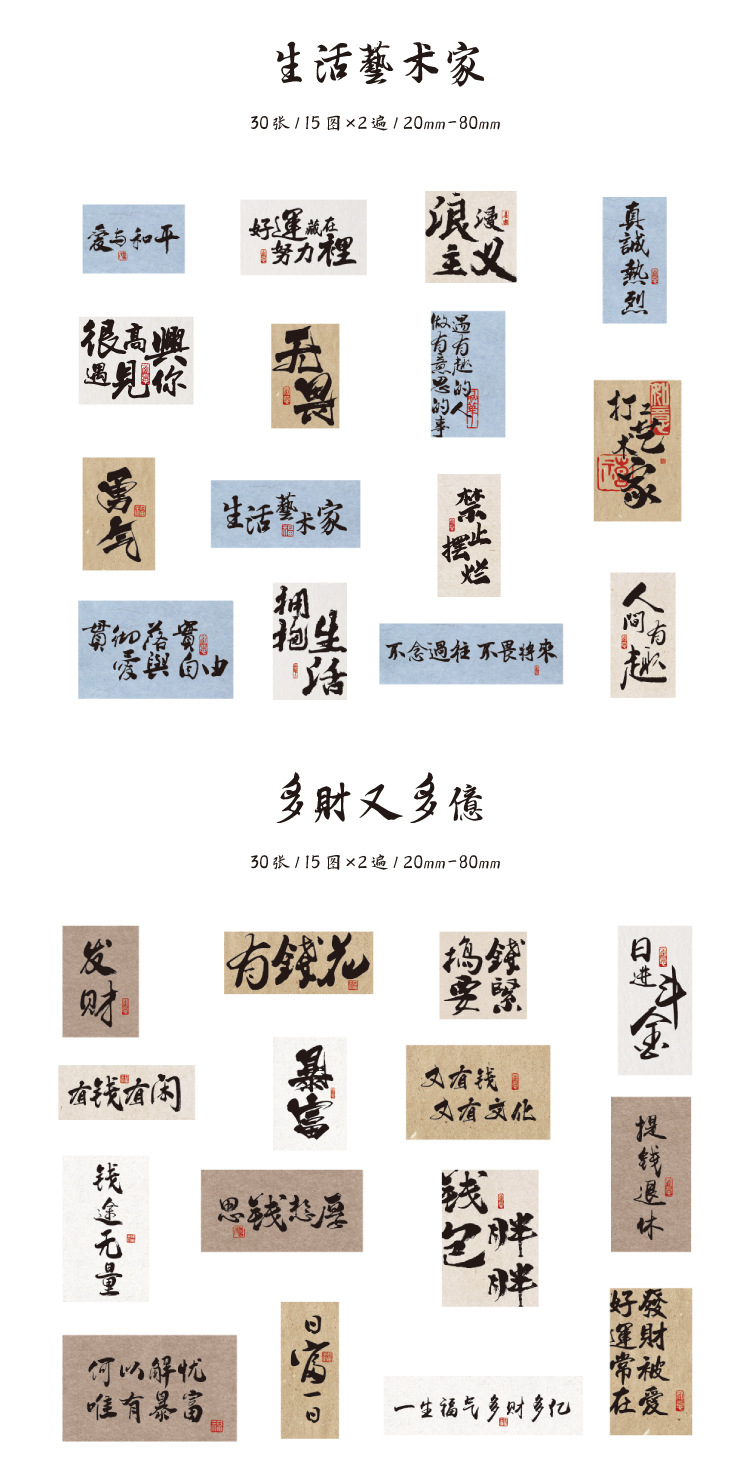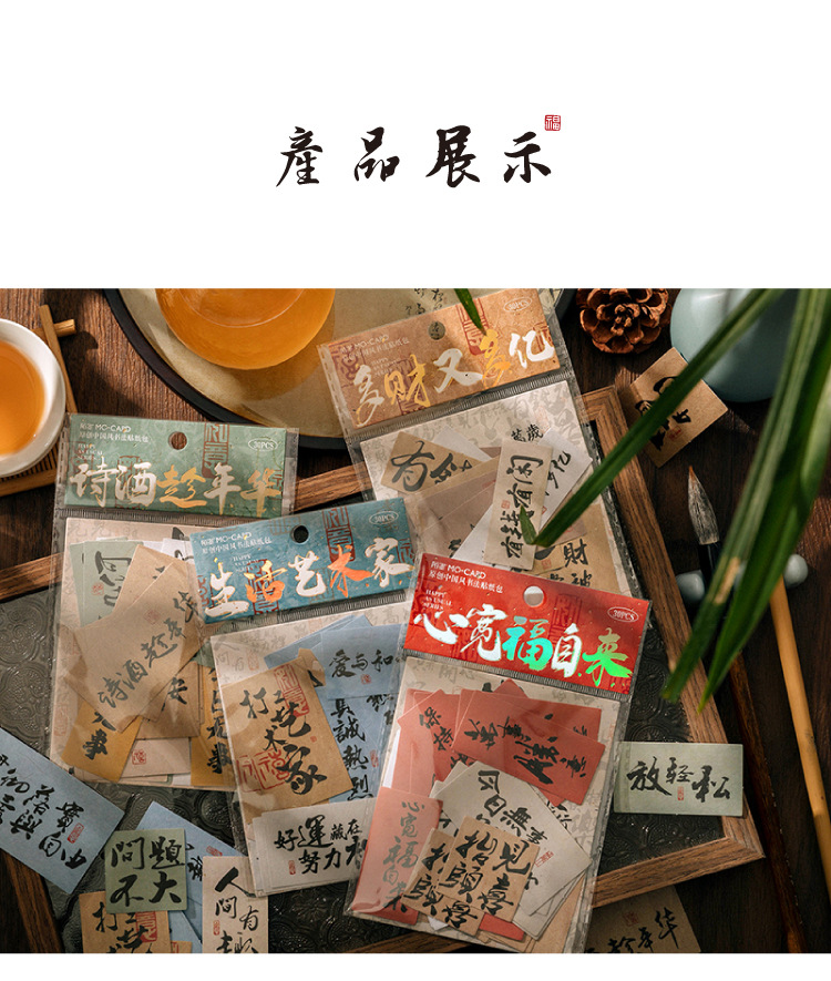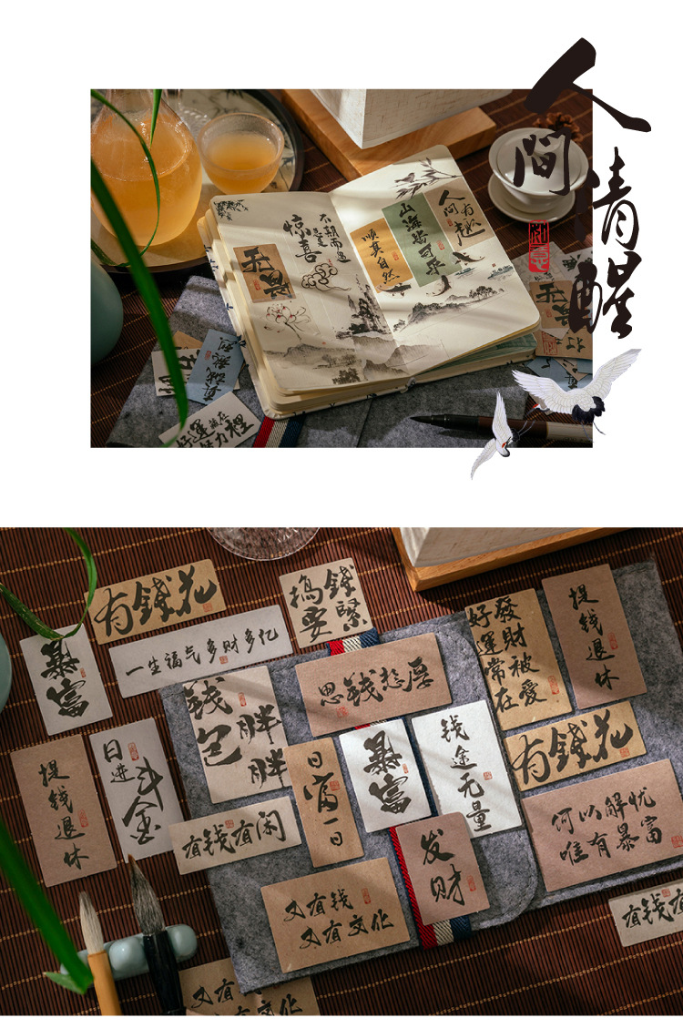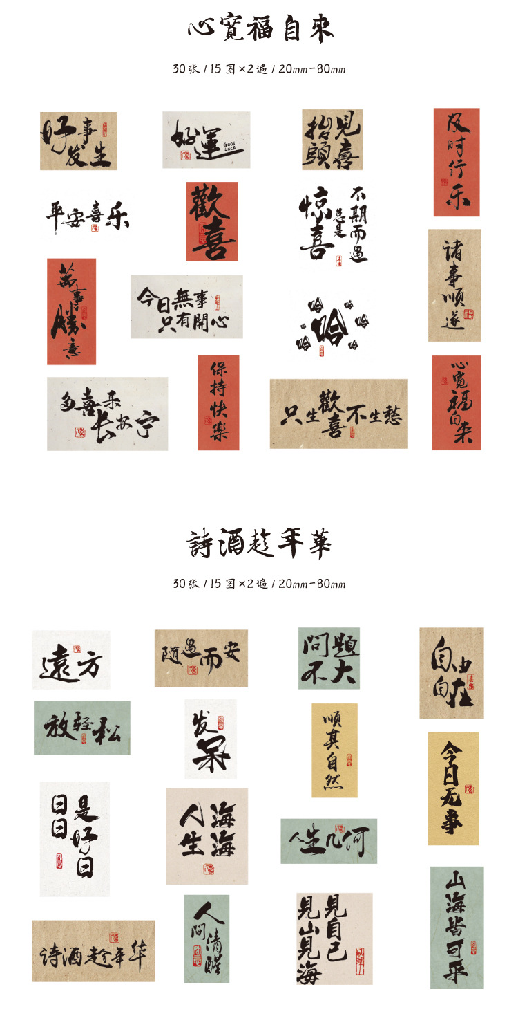 Mo Mo Mo Heyi 종이 스티커 패키지 평소와 같이 행복 한 시리즈 내셔널 스타일 서예 저널 소재 장식 스티커 30 개 4 가지 유형