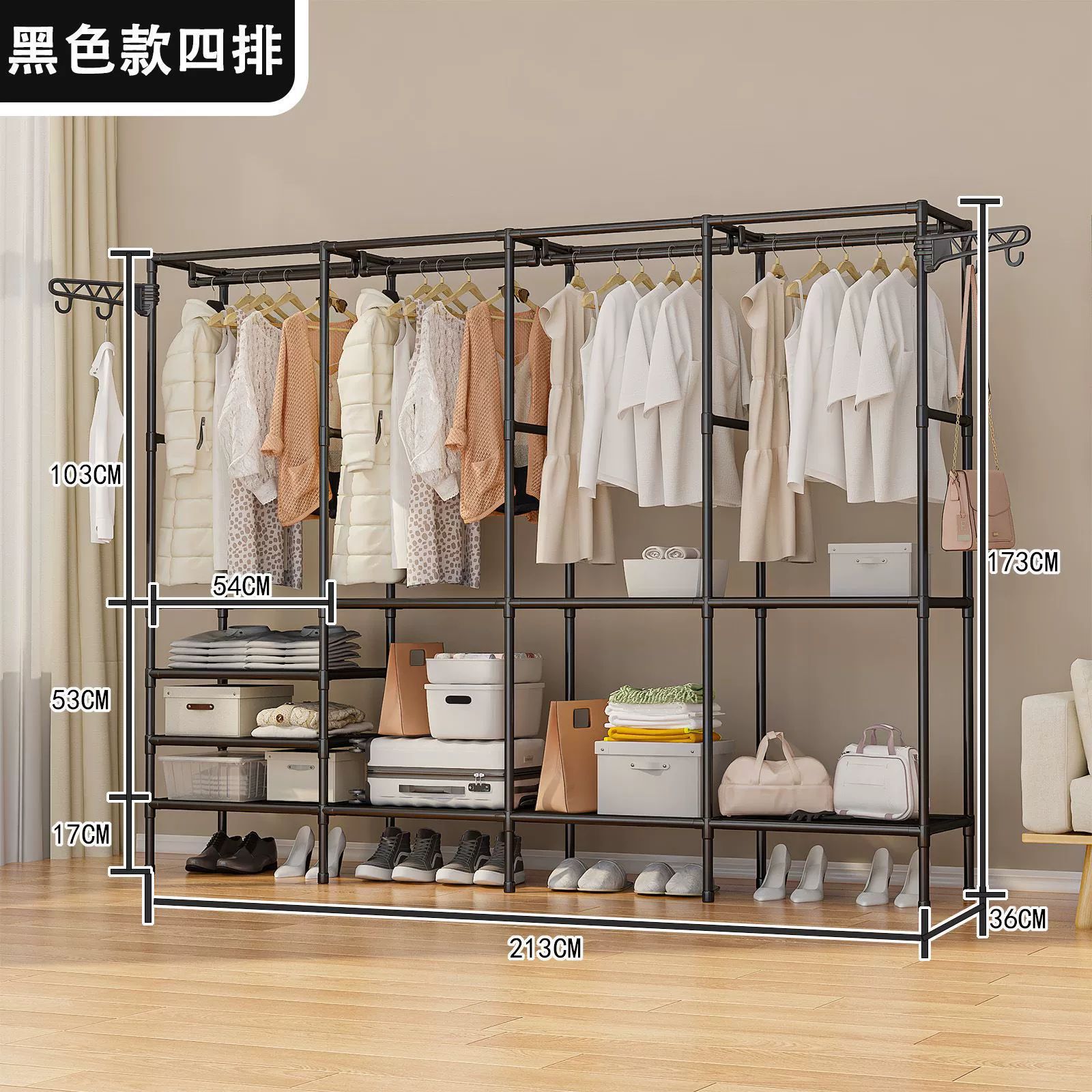 • 4열 옷걸이 블랙