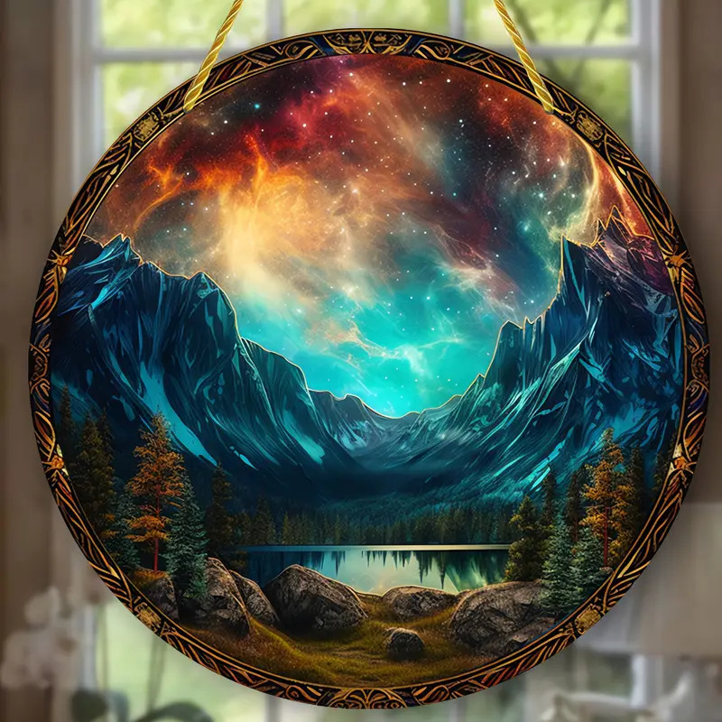 오로라 borealis 스테인드 윈도우 매달려 독특한 선물 아크릴 라운드 홈 벽 교수형 벽 장식