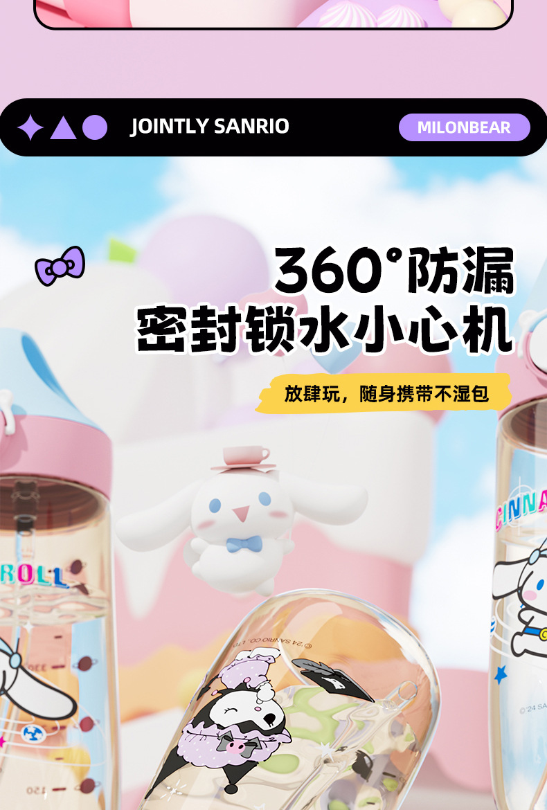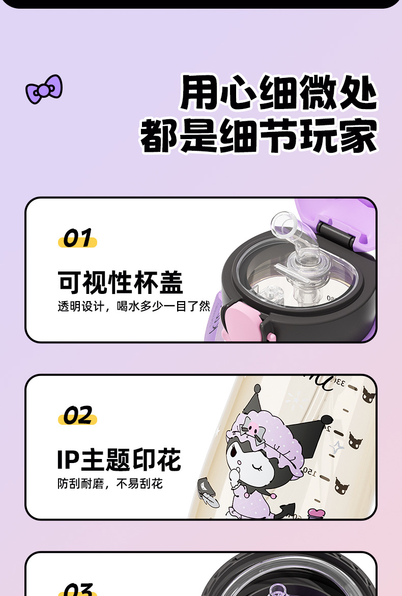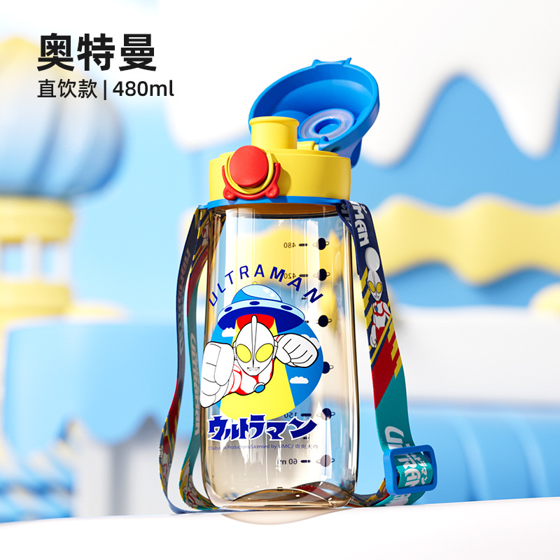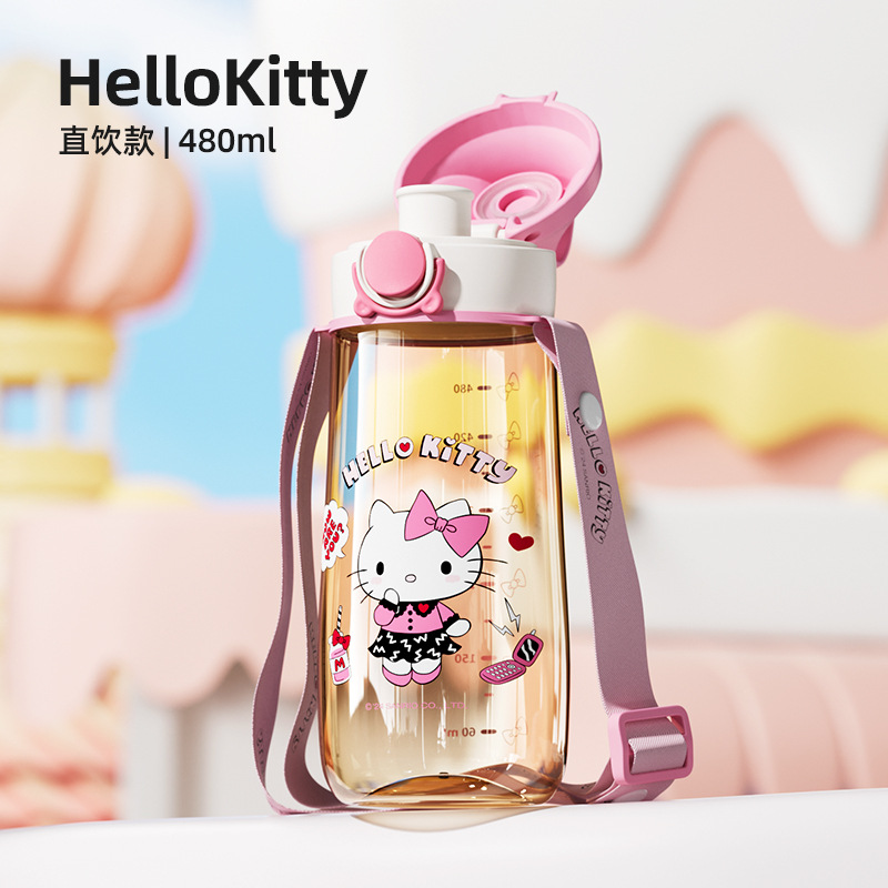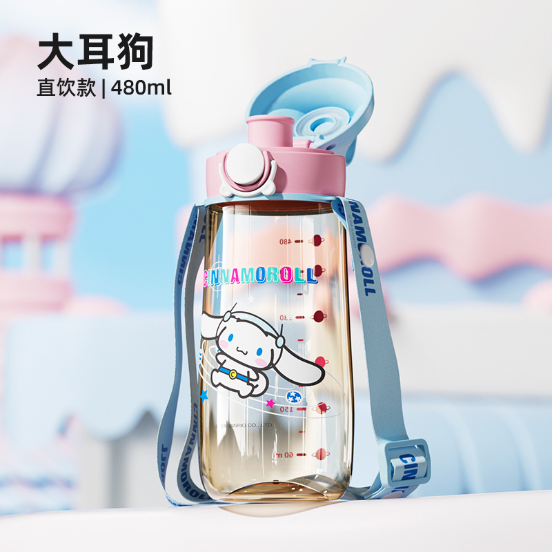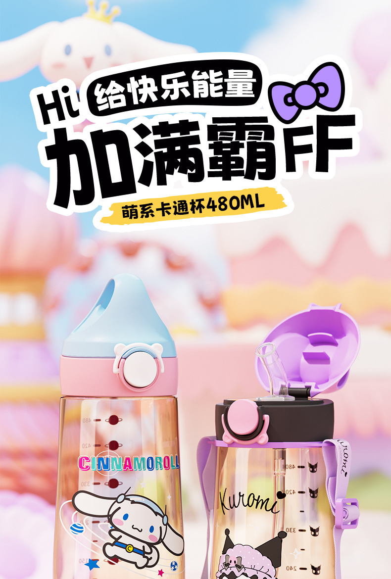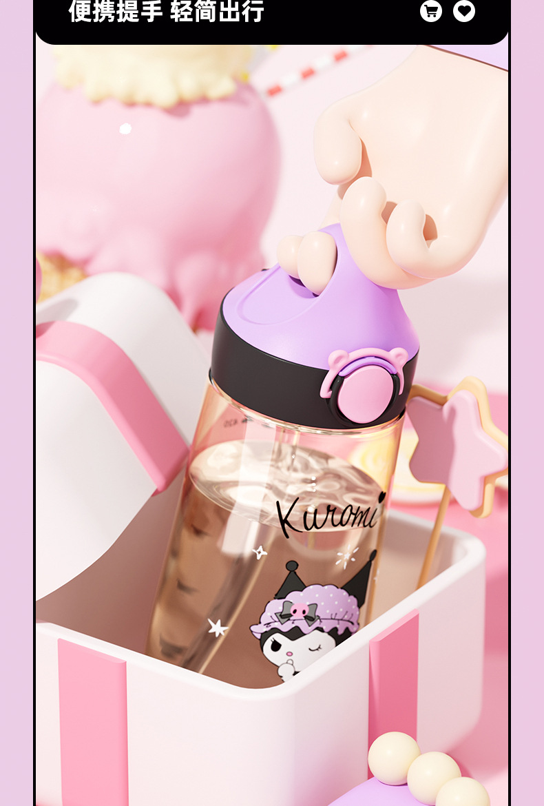 쿨로 미 스포츠 주전자 플라스틱 공간 컵 더블 뚜껑 직접 마시는 밀짚 만화 귀여운 어린이 소년 소녀 물 컵