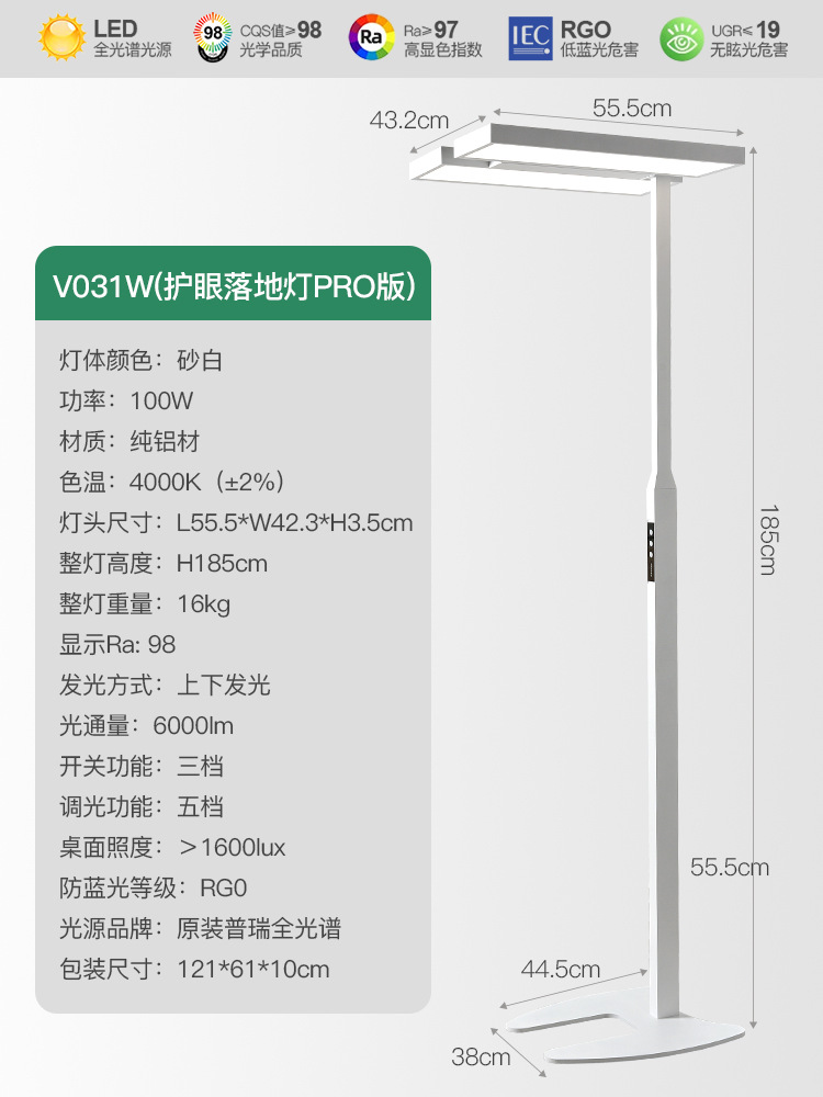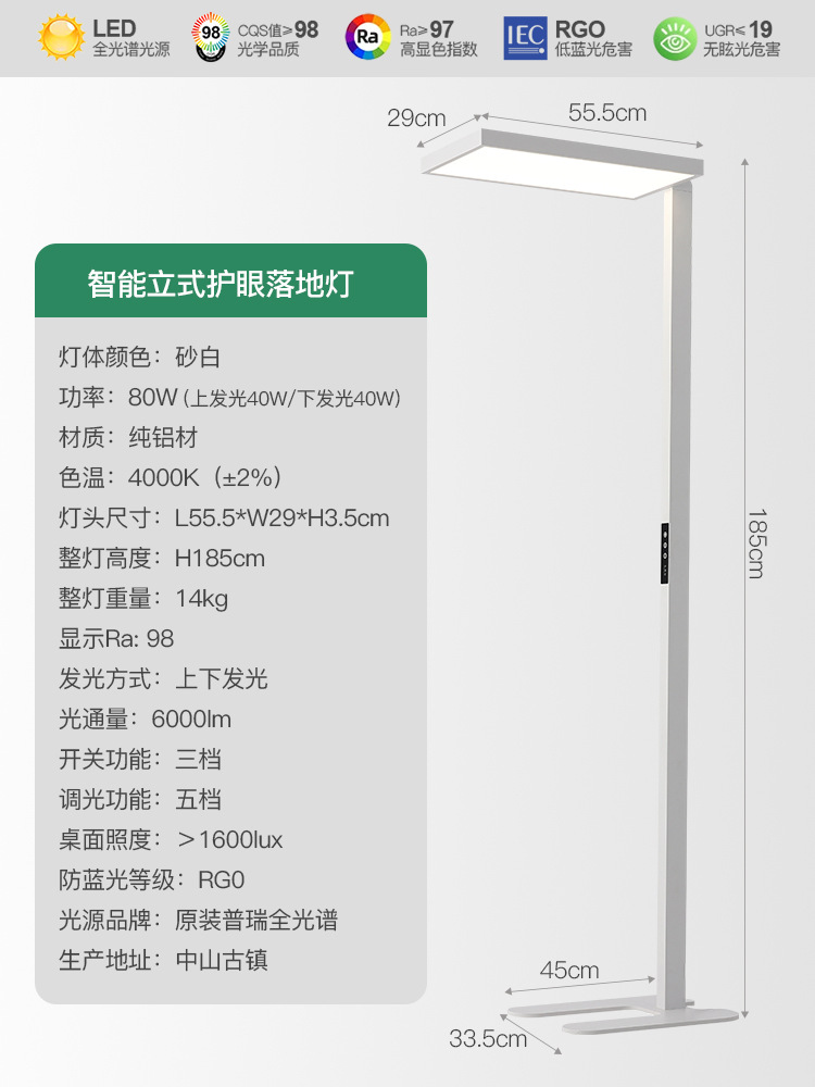 Pu Rui 전체 스펙트럼 눈 보호 바닥 램프 거실 높은 감각 수직 학습 전용 어린이 책상 피아노 가로등스토어 가기