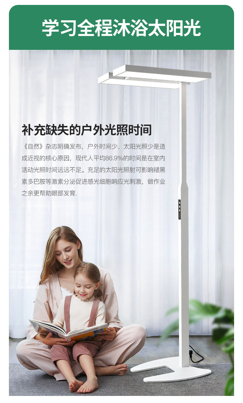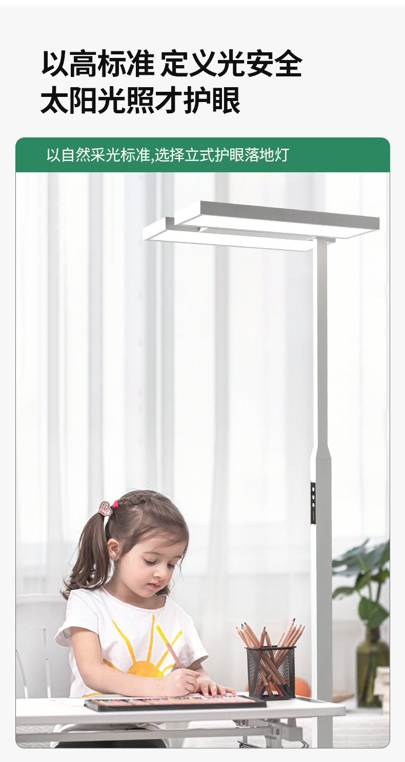 Pu Rui 전체 스펙트럼 눈 보호 바닥 램프 거실 높은 감각 수직 학습 전용 어린이 책상 피아노 가로등