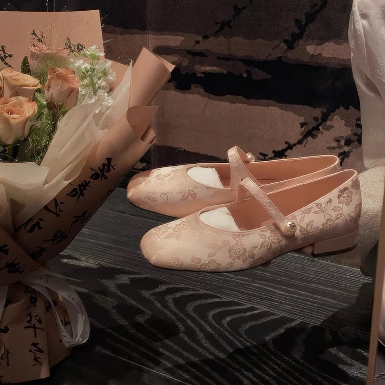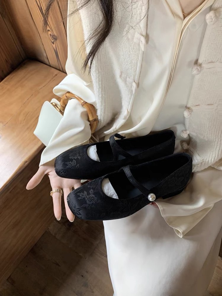 부드러운 이브닝 스타일 펄 메리 제인 여성 신발 2024 새로운 스퀘어 토 청키 힐 싱글 레이어 신발 중국 웨딩 신부 들러리 신발스토어 가기
